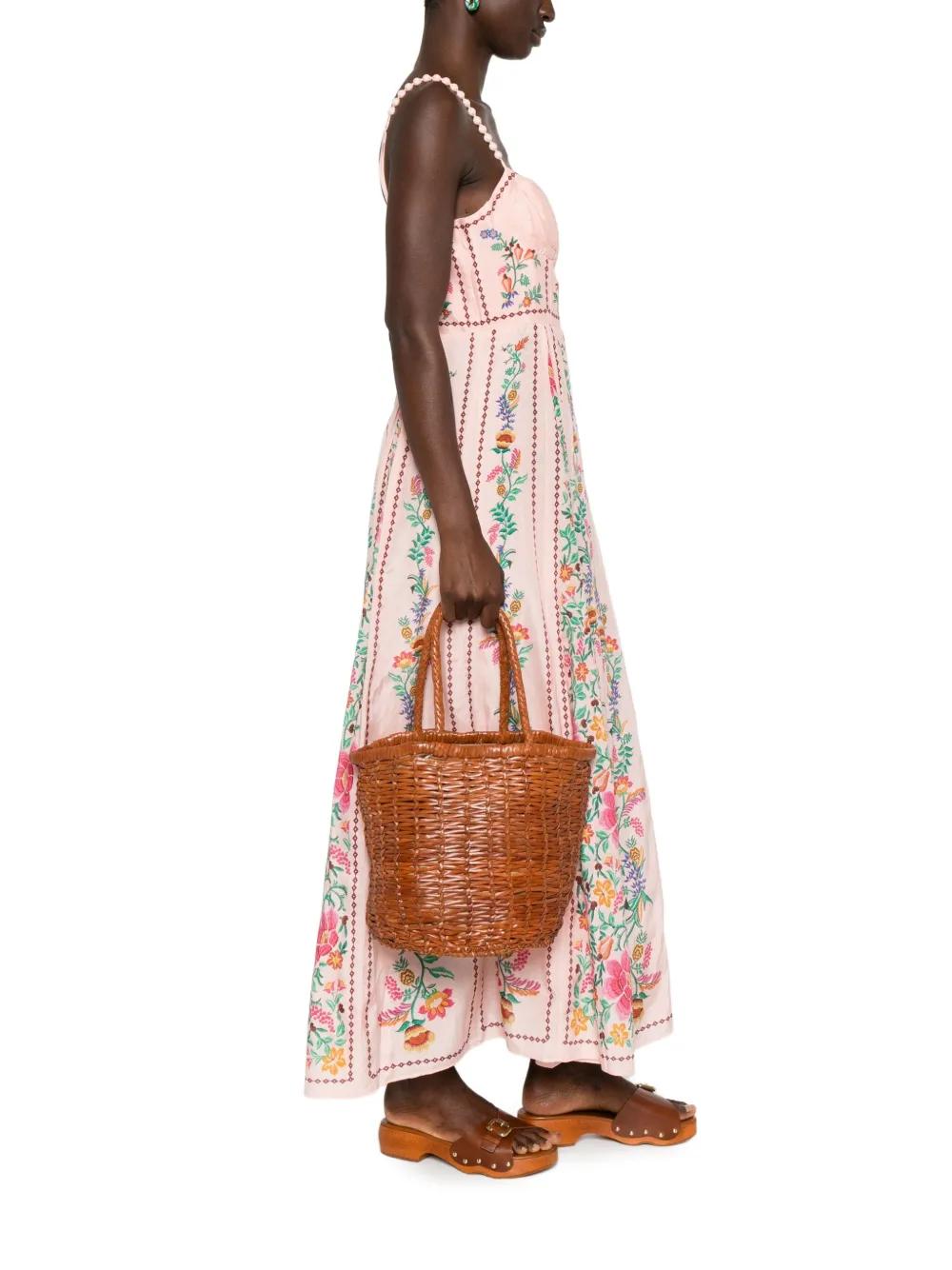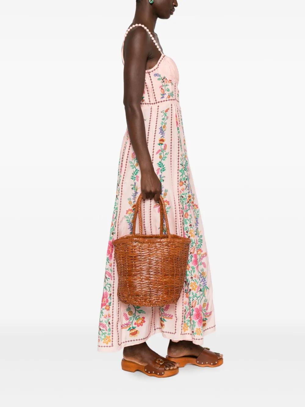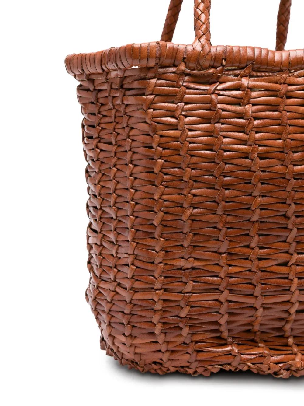 brown woven leather bucket shape