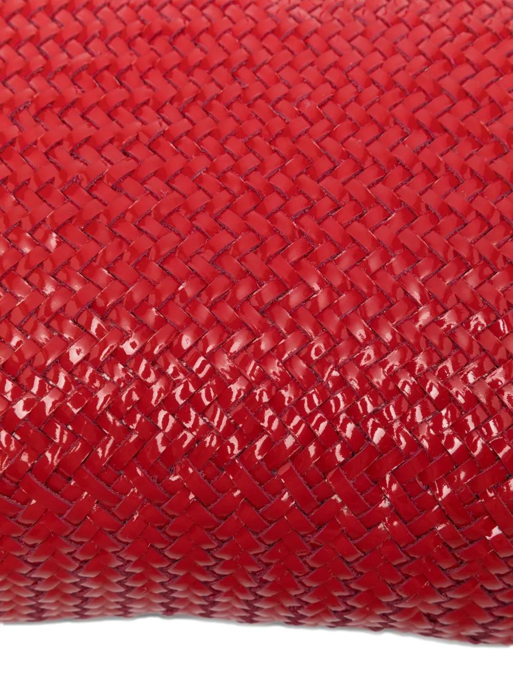 red patent leather interwoven design single shoulder strap rectangular shape foldover top
