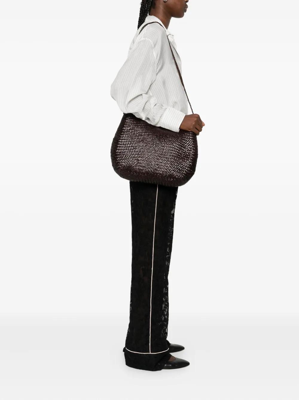 dark brown woven leather calf leather single shoulder strap braided strap detail curved silhouette