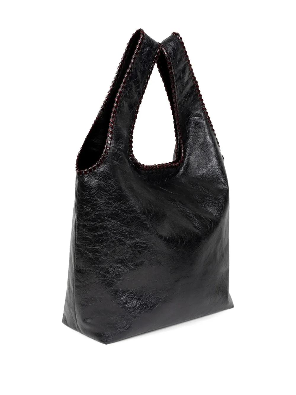 black leather braided edge top handles internal zipped pocket slouchy silhouette
