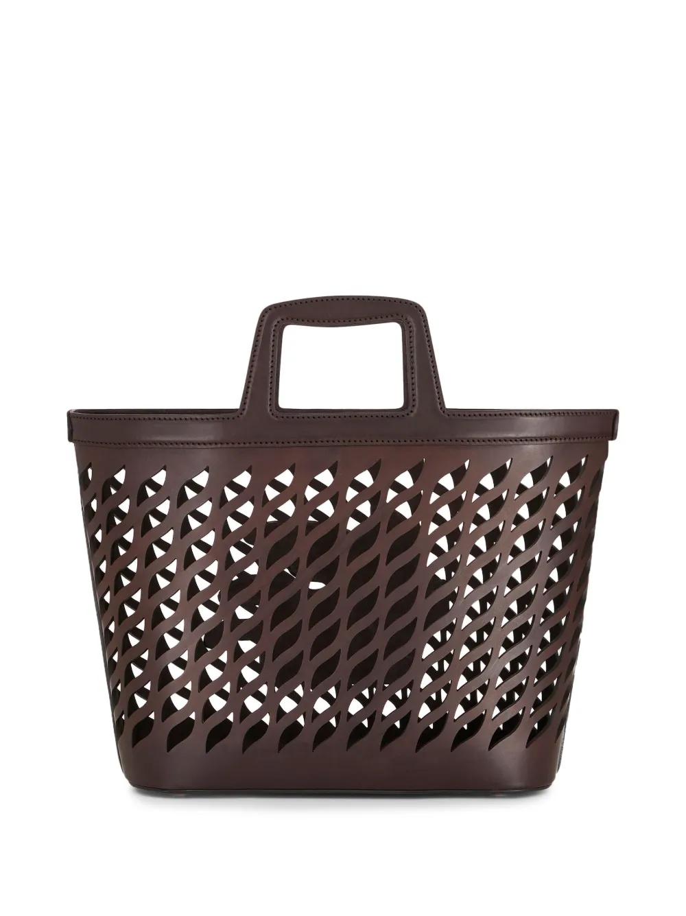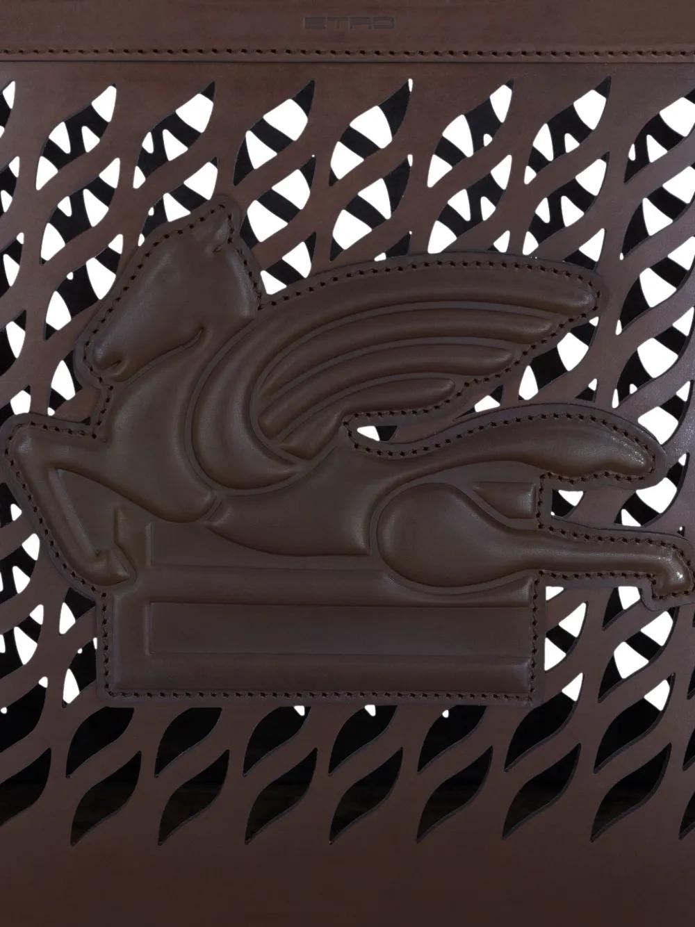 chocolate brown calf leather signature Pegaso motif open top circular top handles main compartment