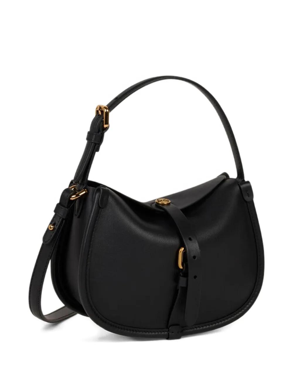 black curved shape top handle buckle fastening detachable shoulder strap gold-tone hardware