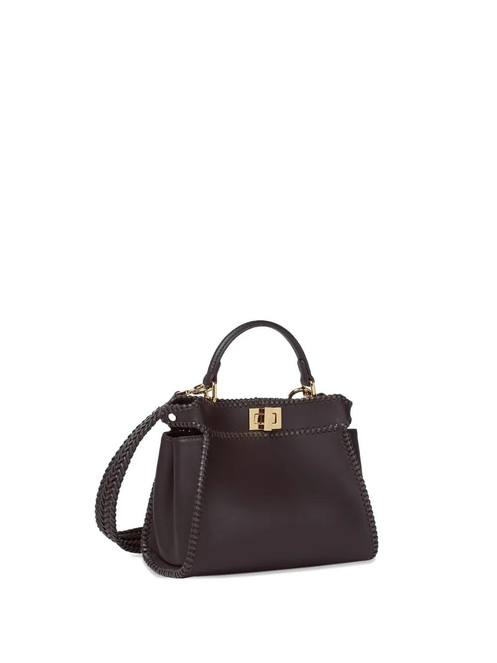 brown braided trims gold-tone hardware turn-lock fastening detachable and adjustable shoulder strap