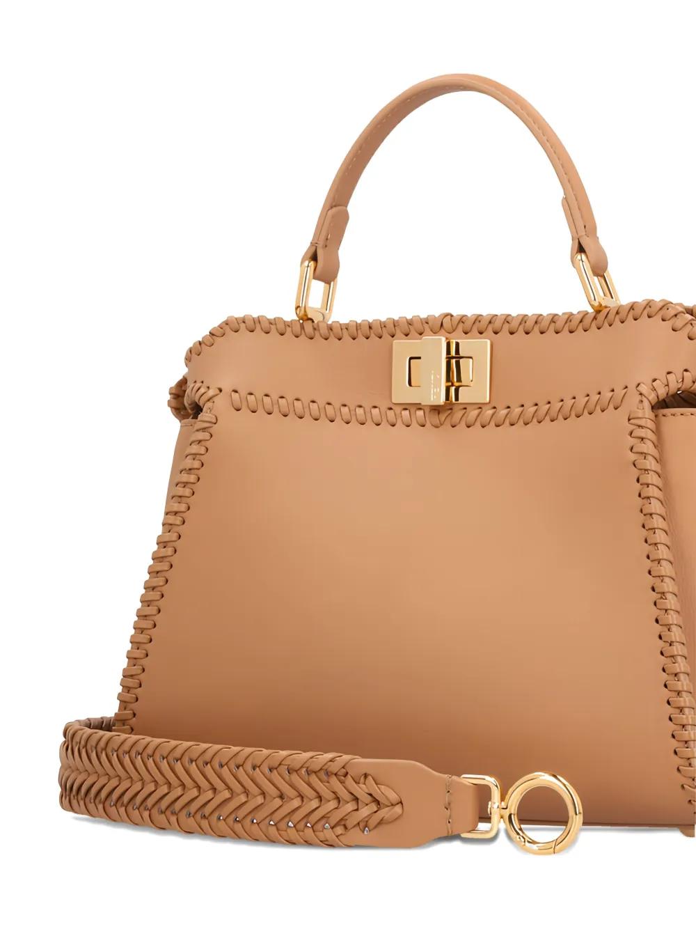 light brown top handle gold-tone hardware stitched edges detachable strap clasp fastening