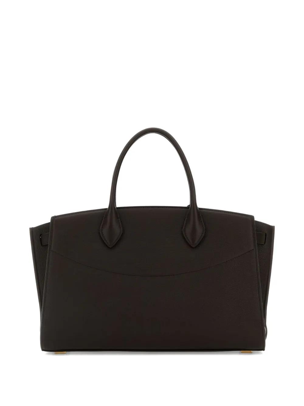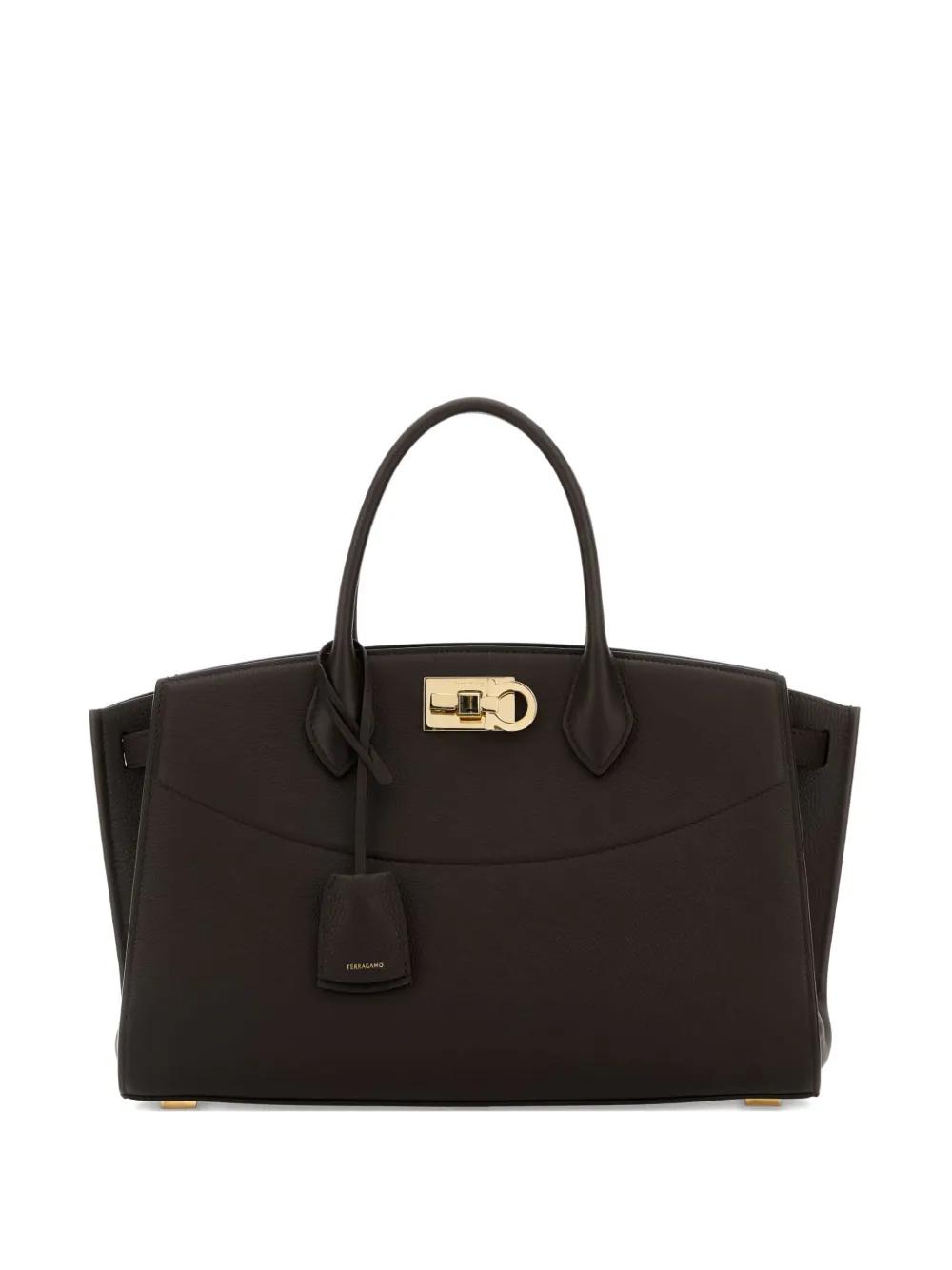 dark brown calf leather Gancini clasp top handles trapeze body gold-tone metal hardware