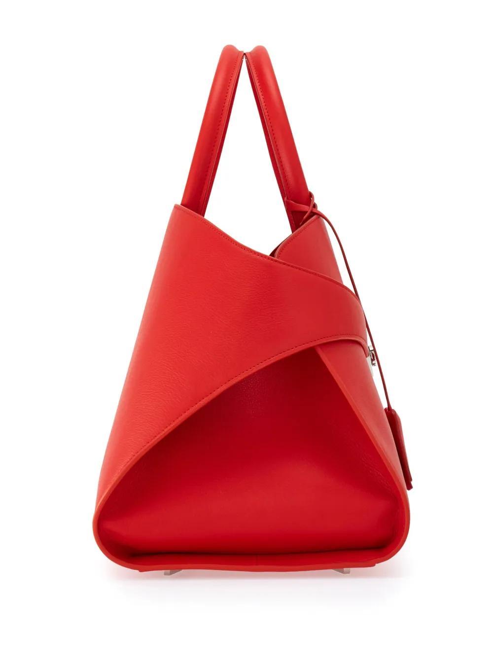 red calf leather silver-tone hardware logo print to the front main compartment circular top handles internal zip-fastening pocket