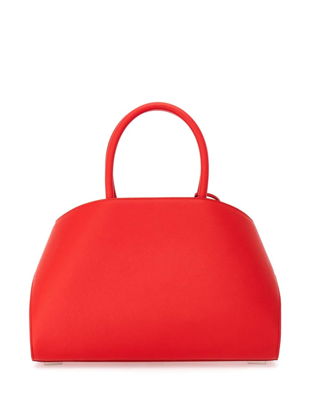Hug leather tote bag from Ferragamo featuring red, calf leather, silver-tone hardware, logo print to the front, main compartment, circular top handles and internal zip-fastening pocket.