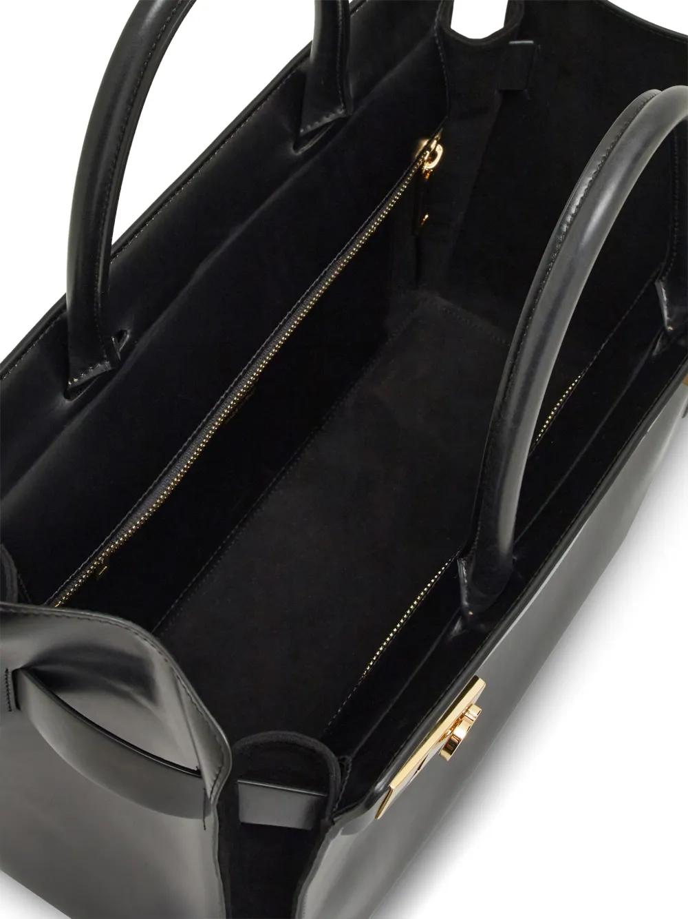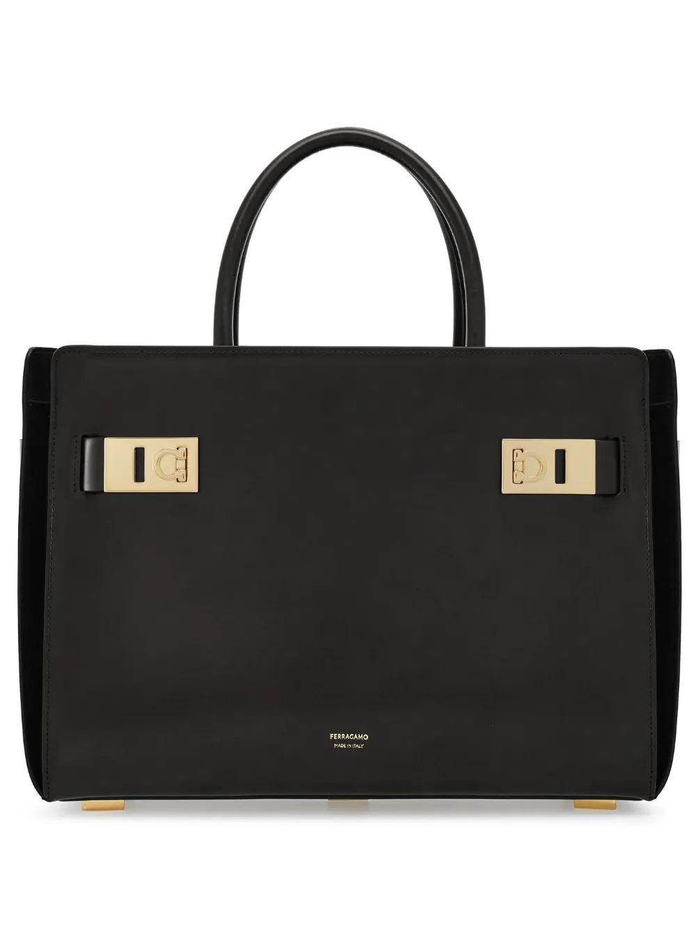 black calf leather/goatskin gold-tone hardware Gancini buckle open top circular top handles main compartment internal zip-fastening pocket