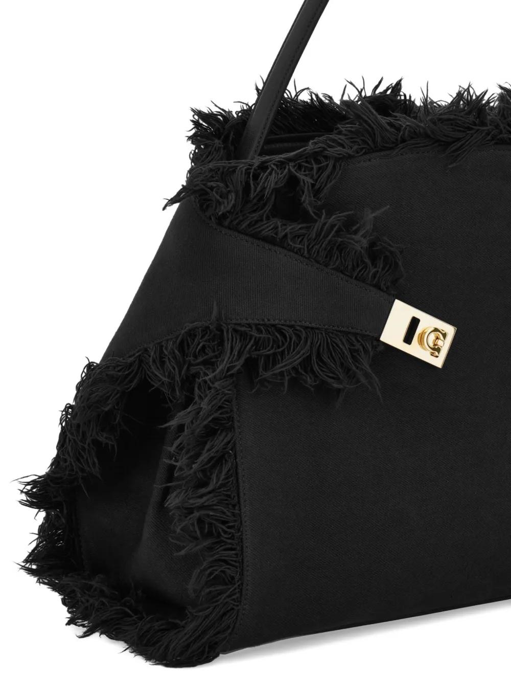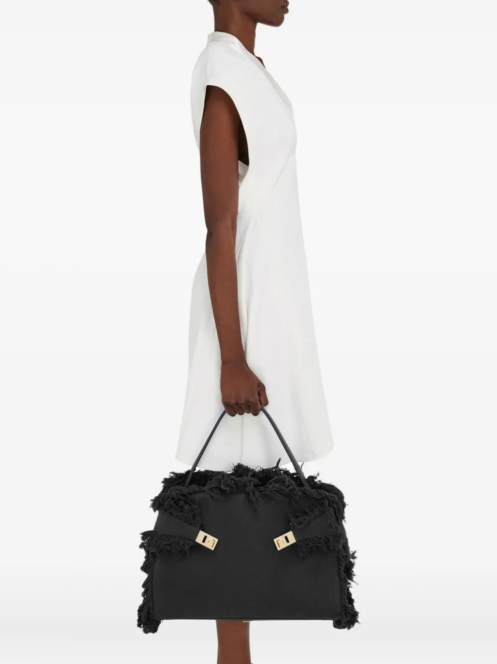 Ferragamo large Hug fringe-detail shoulder bag - Black