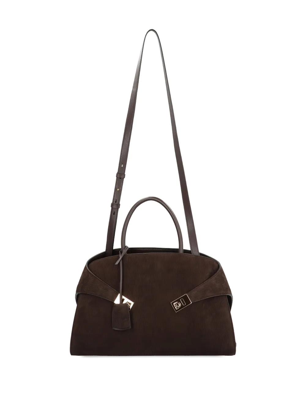cedar brown Gancini flip-lock fastening two rolled top handles adjustable detachable shoulder strap This piece comes complete with a protective dust bag.