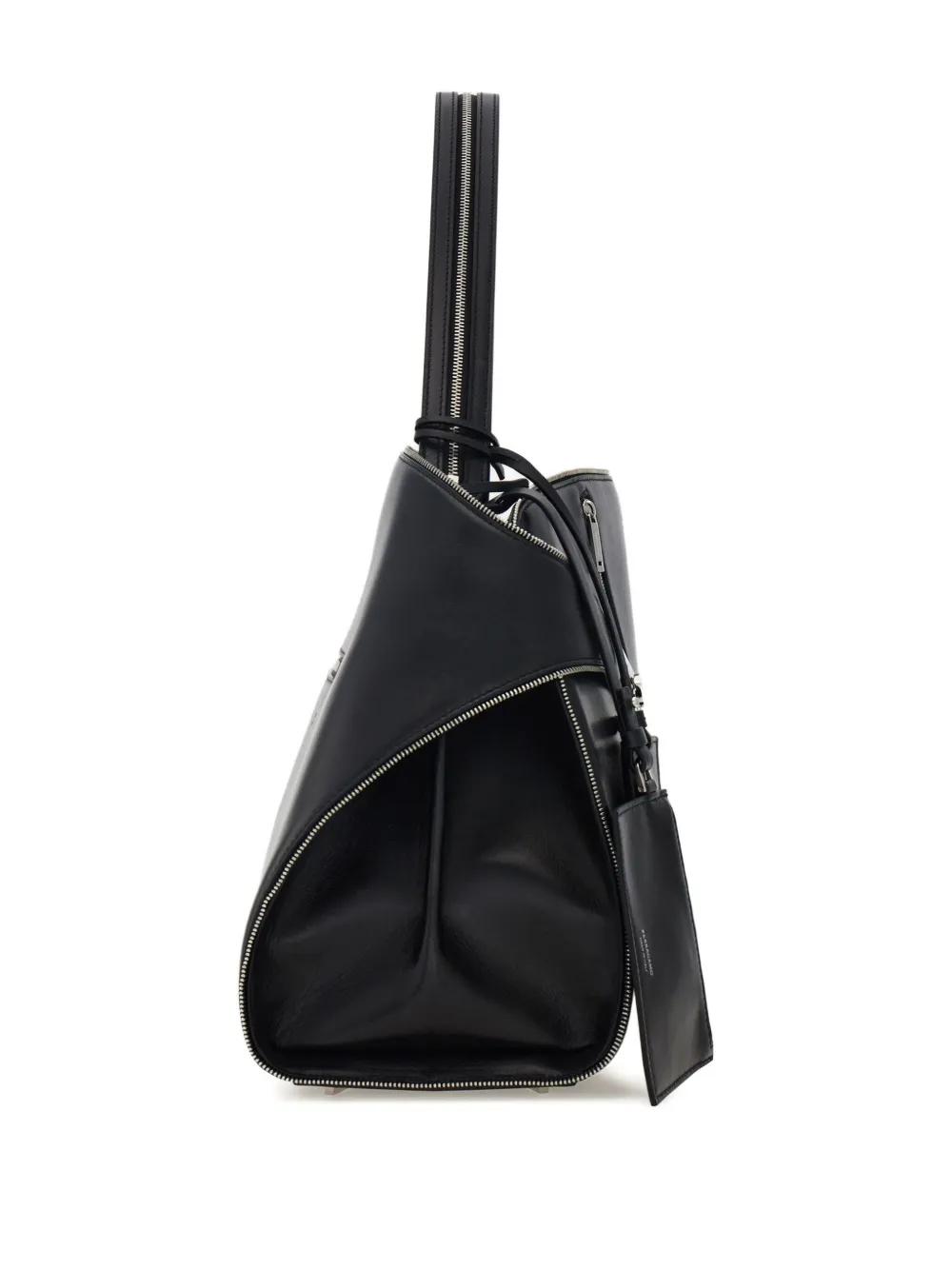 black calfskin leather multiple zip details silver-tone hardware removable pouch top handle
