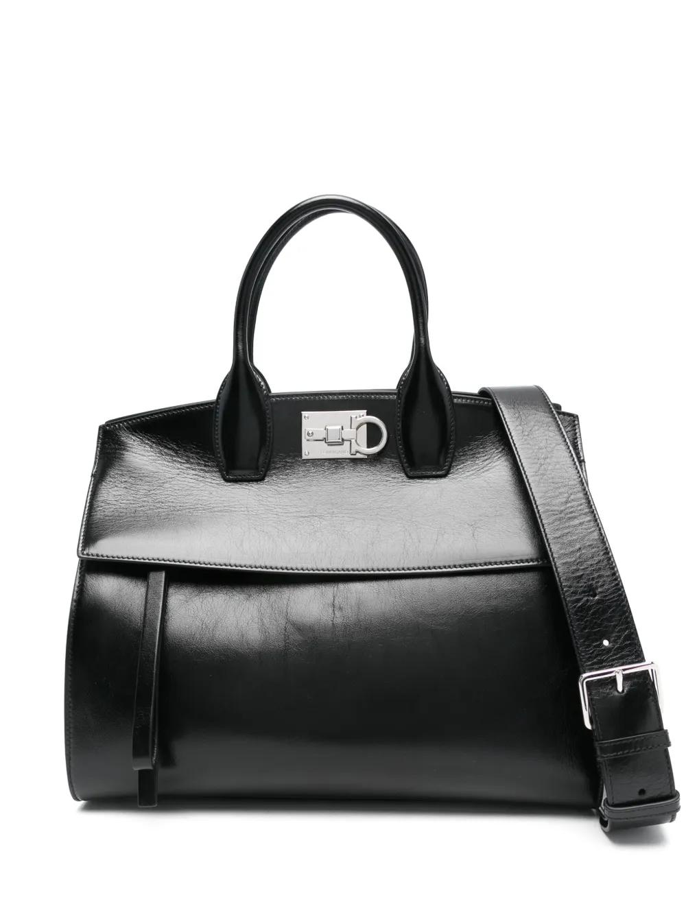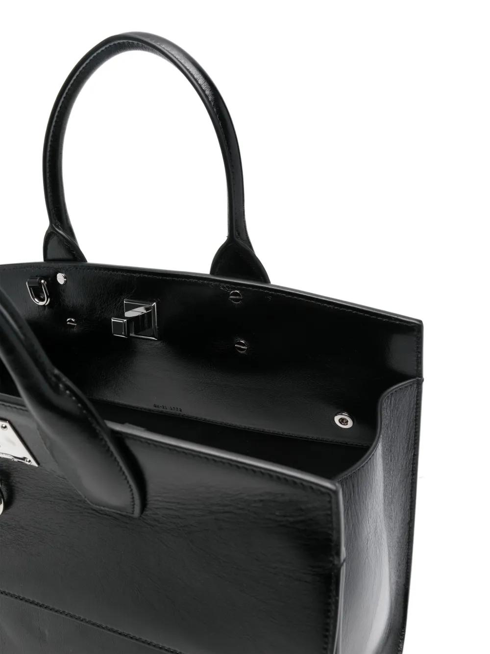black calf leather smooth grain clasp fastening two rolled top handles adjustable detachable shoulder strap logo-engraved silver-tone hardware concealed front zip-fastening pocket metal feet main compartment internal detachable zip-fastening pouch This piece comes complete with a protective dust bag.