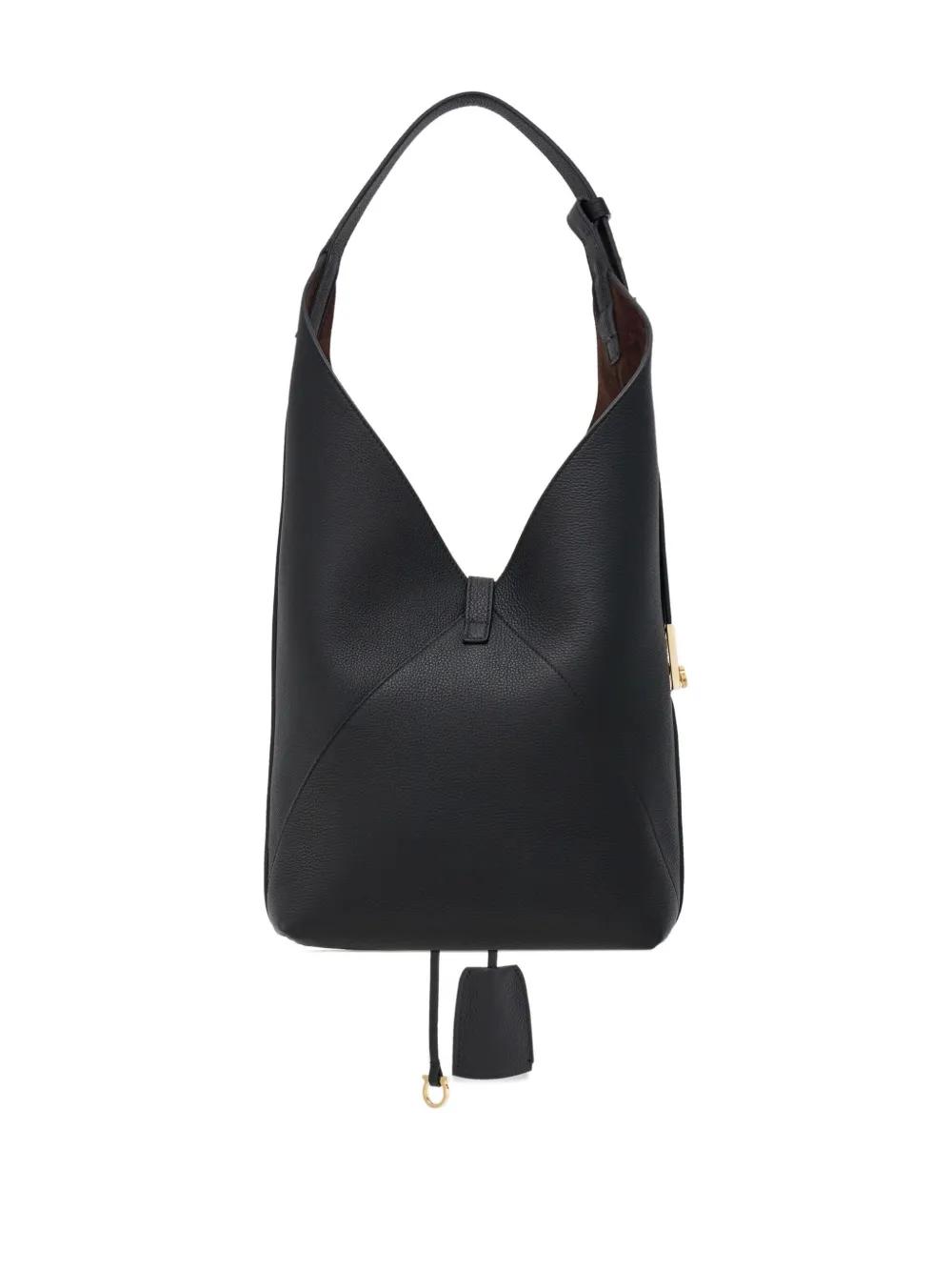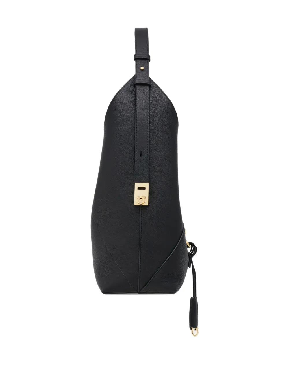 black gold-tone hardware knot detailing internal slip pocket adjustable shoulder strap