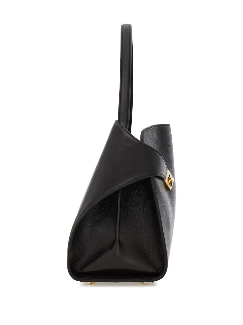 black calfskin leather gold-tone Gancini buckles single top-handle magnetic-flap closure