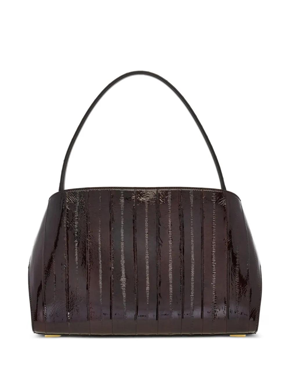 brown eel skin top handle removable shoulder strap