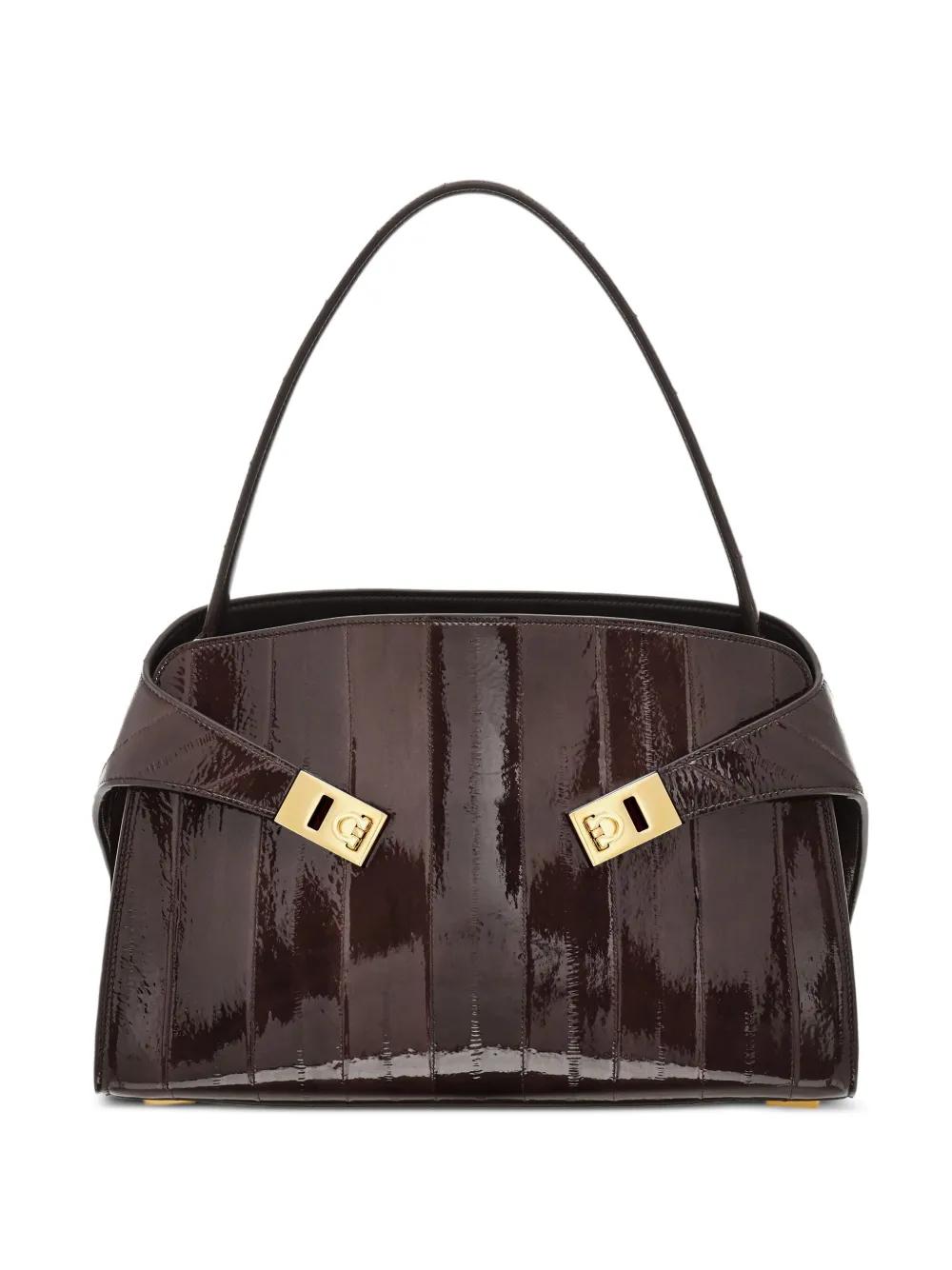 Ferragamo medium Hug Gancini-buckles eel-skin shoulder bag - Brown
