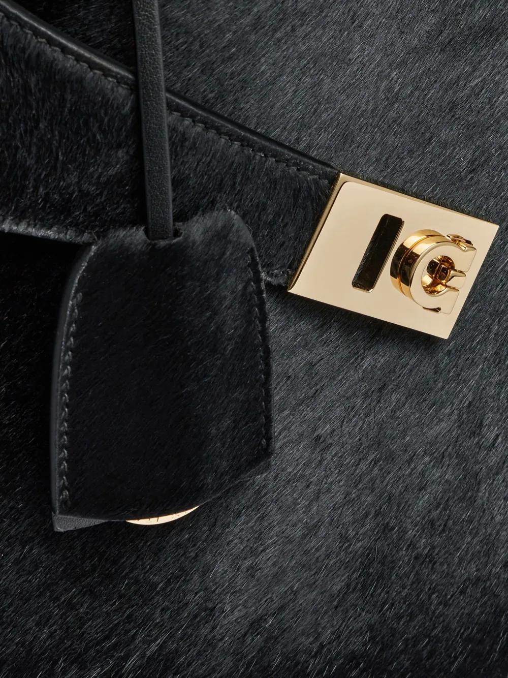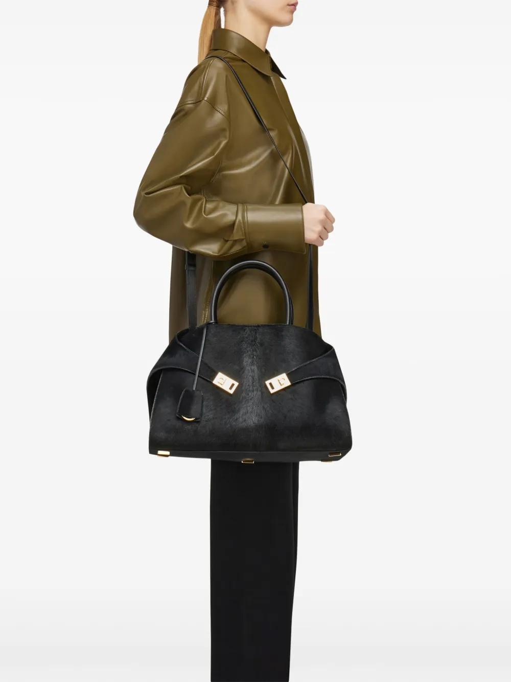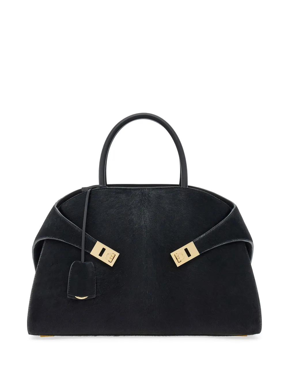 black keyring attachment main compartment internal zip-fastening pocket metal feet gold-tone hardware buckle fastening two rolled top handles