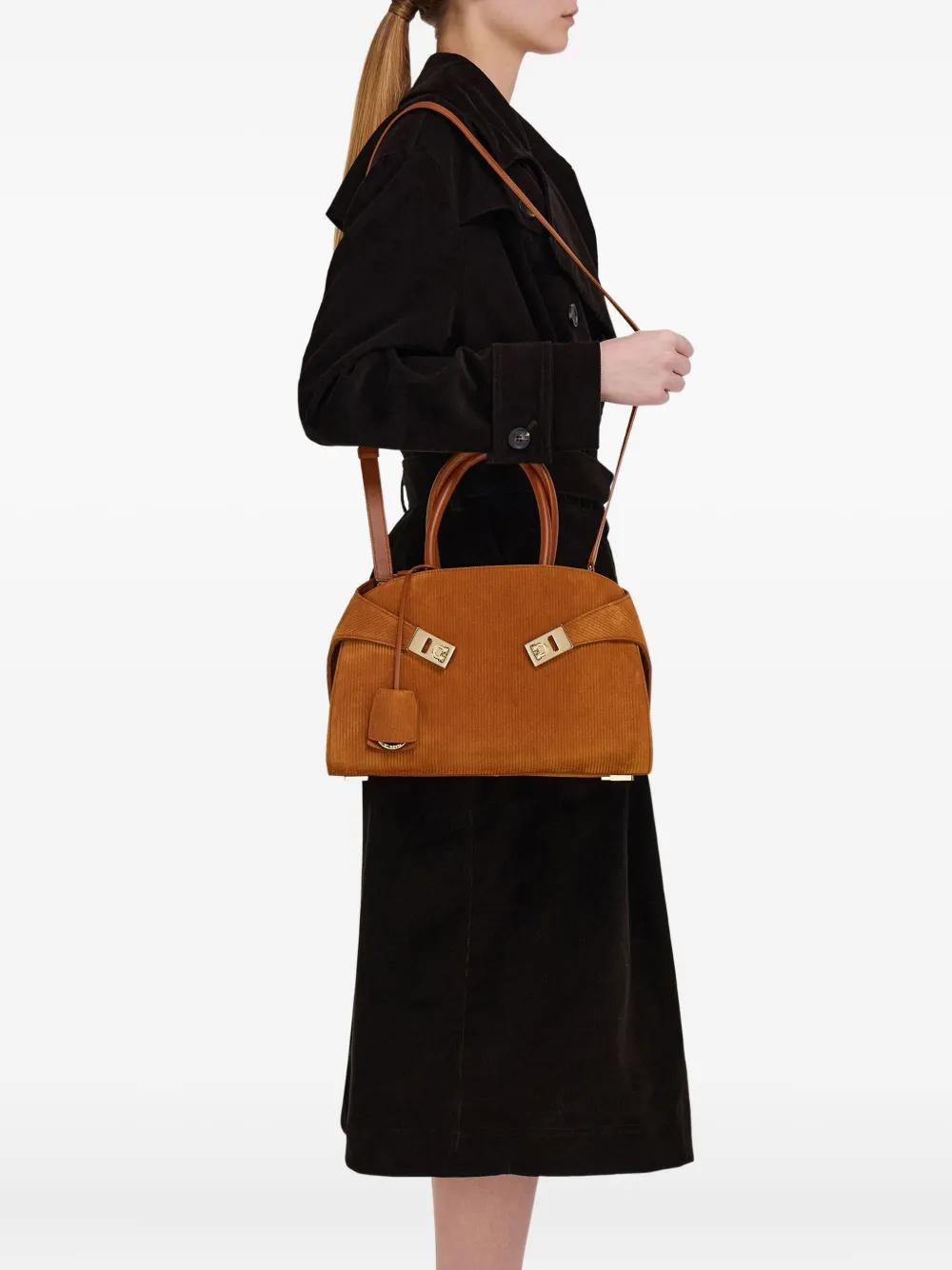 brown two top handles adjustable detachable shoulder strap Gancini buckle main compartment
