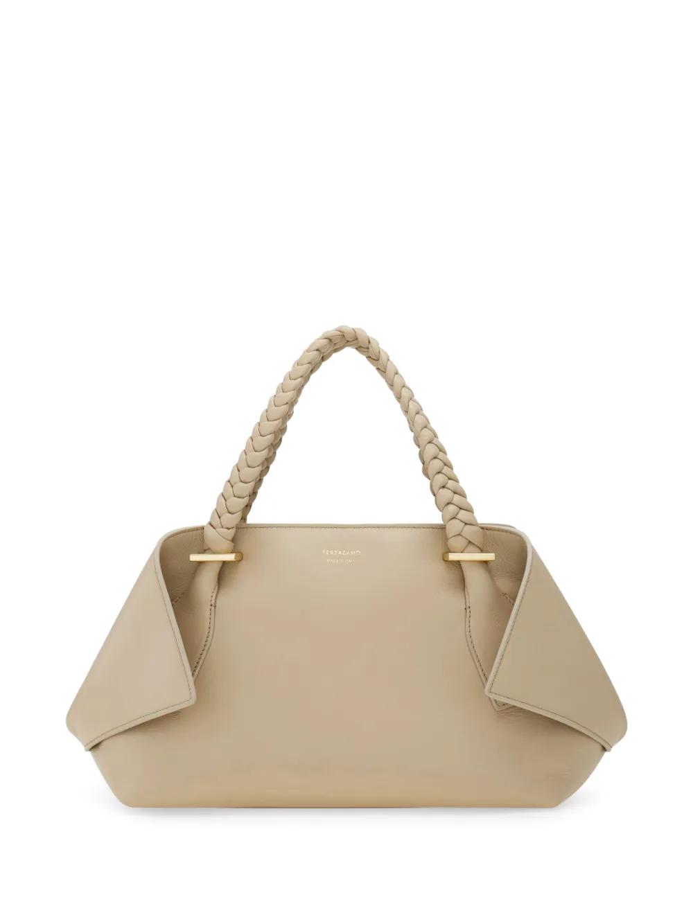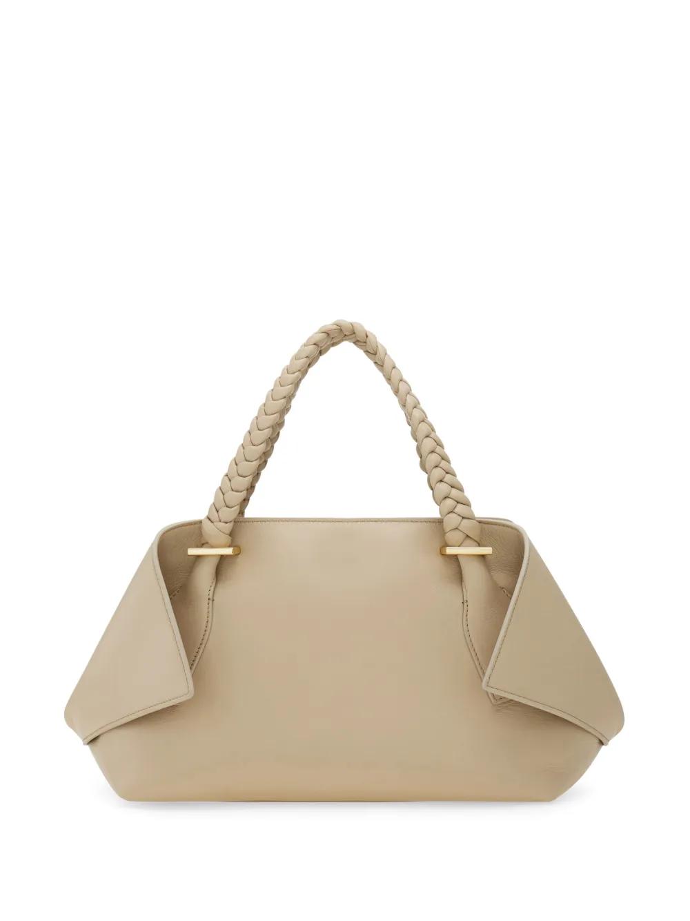 beige leather zip fastening logo print to the front braided top handles internal zip-fastening pocket stud detail