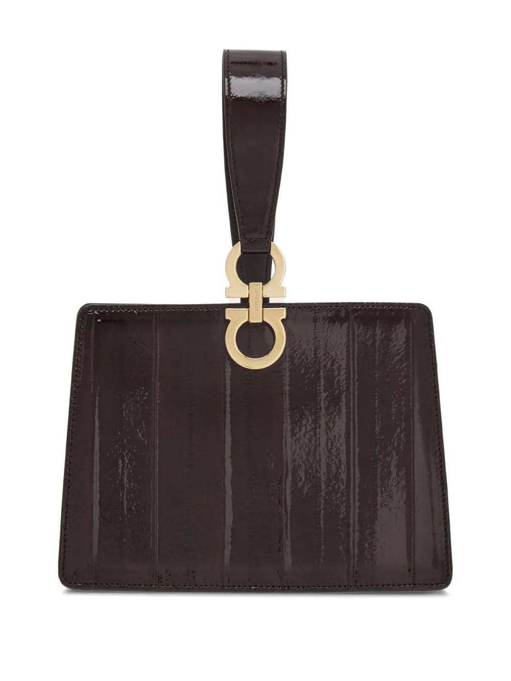 brown eel skin geometric silhouette magnetic closure Gancini wristlet vertical panel detailing This item comes from our partner boutiques in a variety of countries and cannot be shipped outside its region (either US, UAE, or the EU & UK). Please check the country of origin in the Shipping & Free Returns tab or your Shopping Bag to make sure it can be delivered to your location.