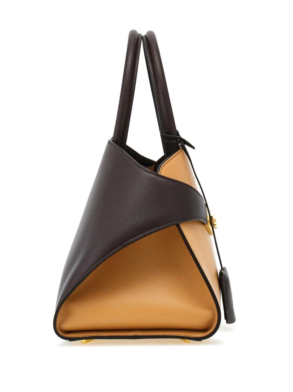 camel brown/brown calf leather grained texture colour-block design debossed logo to the front ring hardware detailing Gancini plaque toggle fastening two rolled top handles adjustable detachable shoulder strap main compartment internal zip-fastening pocket leather lining gold-tone hardware This piece comes complete with a protective dust bag.
