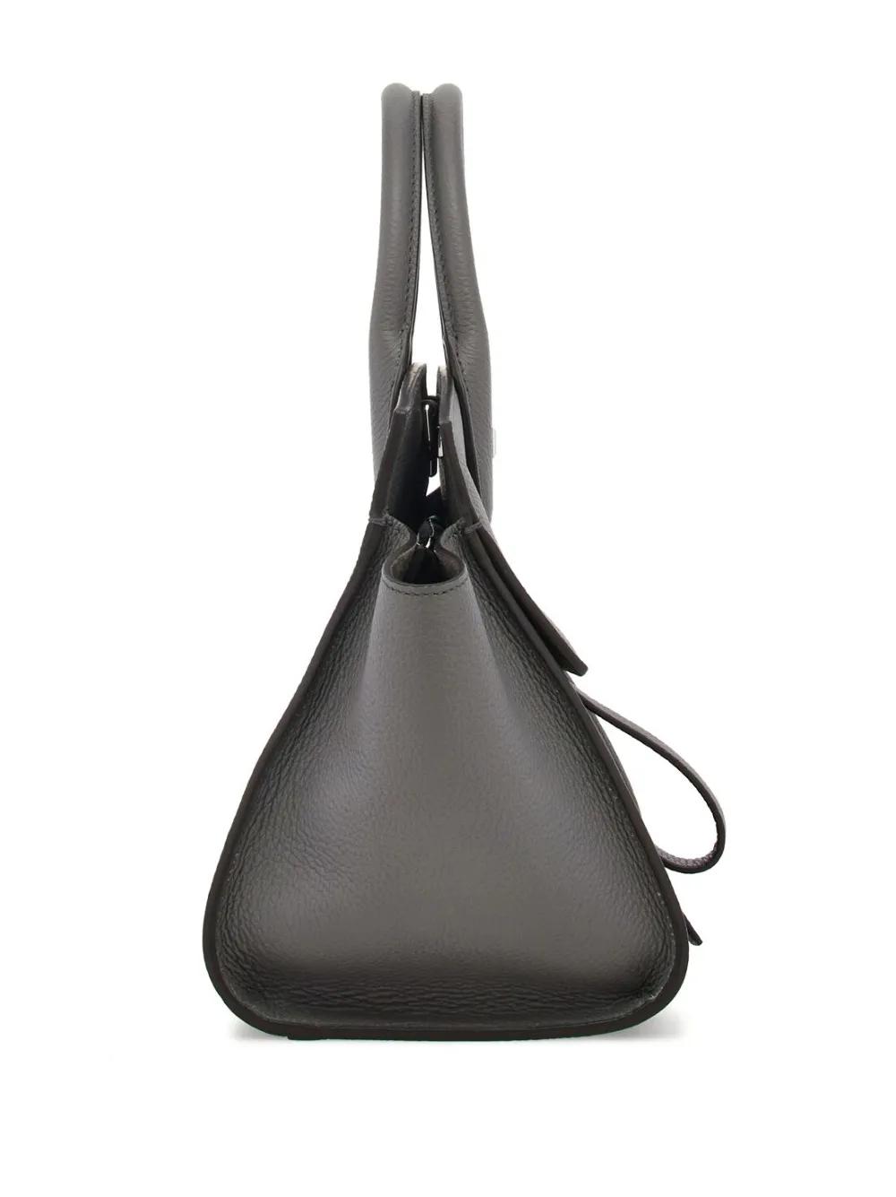ash grey leather/goatskin silver-tone hardware silver-tone logo plaque two top handles adjustable detachable shoulder strap open top main compartment removable pouch front zip fastening pockets