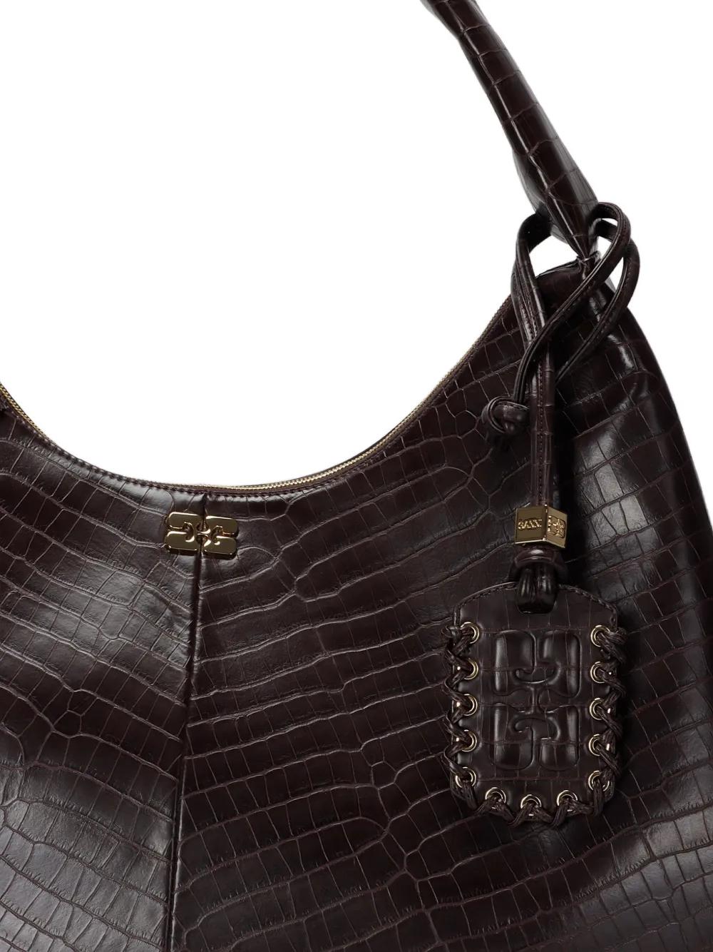 GANNI medium crocodile-embossed shoulder bag - Brown