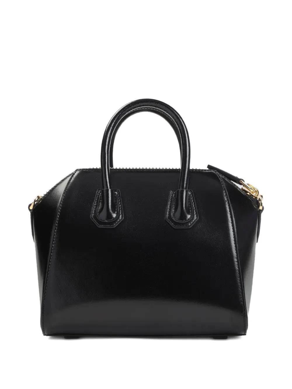 black top handle detachable shoulder strap gold-tone hardware top zip fastening logo lettering