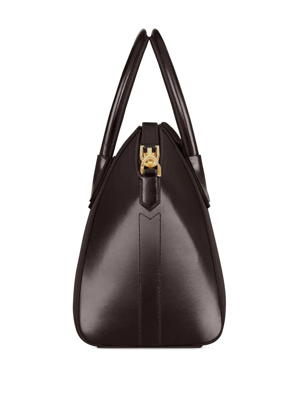 brown calf leather top handle zip fastening gold-tone hardware internal pocket
