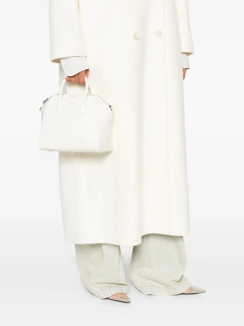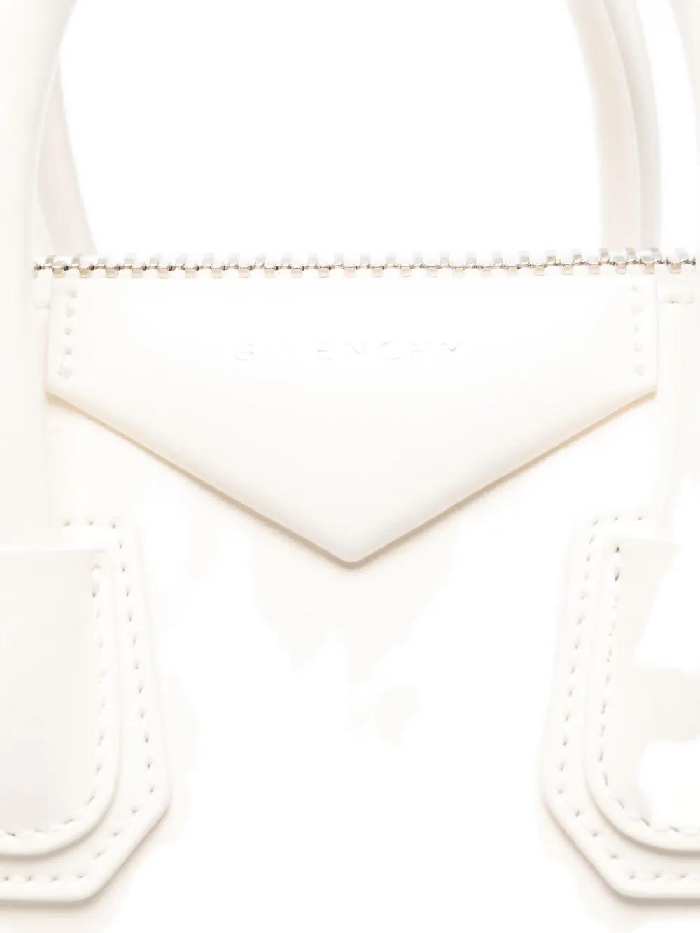 white top handles detachable shoulder strap top zip fastening silver-tone hardware leather