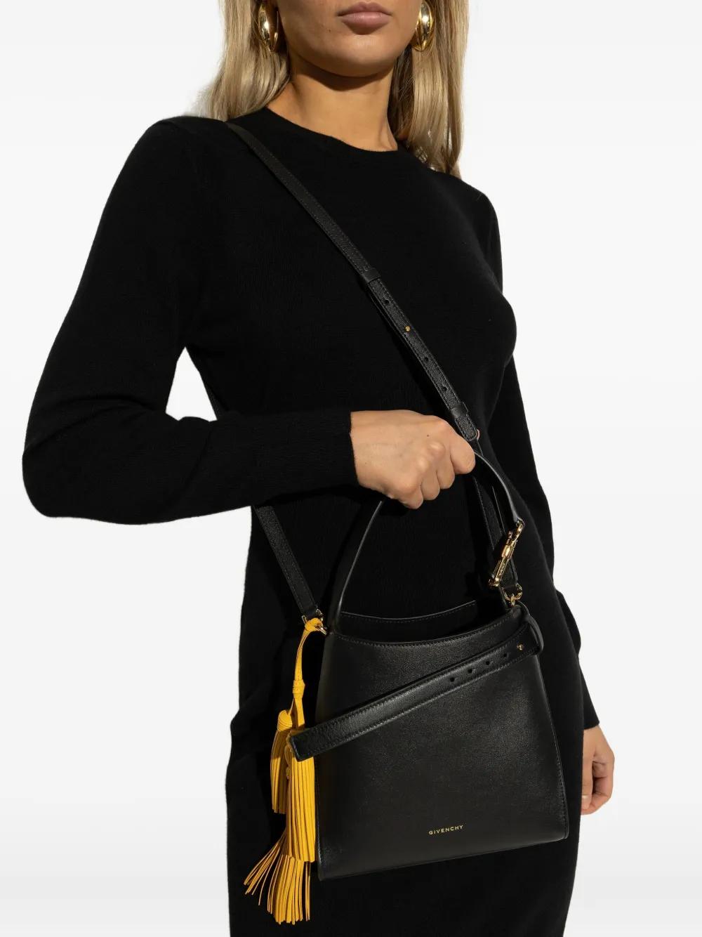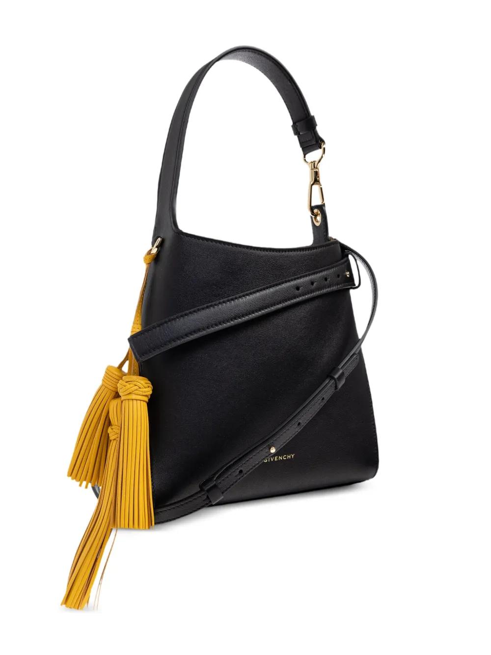 black calf leather top handle detachable shoulder strap diagonal strap yellow tassel