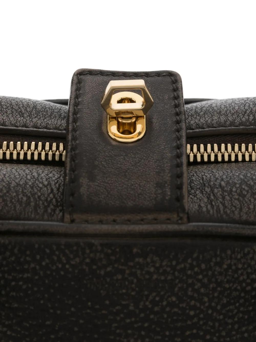 dark brown top handles zip fastening gold-tone clasp detachable shoulder strap
