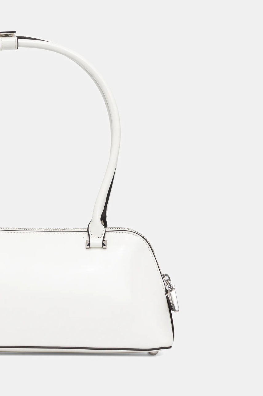 - Dołączony tekstylny worek zabezpiecza produkt przed kurzem. - Komora zapinana na suwak. - Model wyposażony w metalowe nóżki, które zabezpieczają spód torebki. - Długie uchwyty dla komfortowego noszenia w dłoni lub na ramieniu. - Nie mieści formatu A4. - Model z podszewką. - Przegrody na karty. - Głębokość: 8 cm. - Szerokość u podstawy: 30 cm. - Wysokość: 12 cm. - Długość uchwytów: 58 cm.