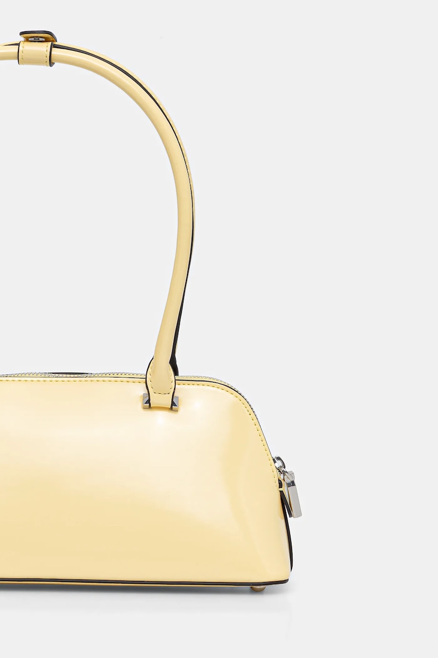 - Dołączony tekstylny worek zabezpiecza produkt przed kurzem. - Komora zapinana na suwak. - Model wyposażony w metalowe nóżki, które zabezpieczają spód torebki. - Długie uchwyty dla komfortowego noszenia w dłoni lub na ramieniu. - Nie mieści formatu A4. - Model z podszewką. - Przegrody na karty. - Głębokość: 8 cm. - Szerokość u podstawy: 30 cm. - Wysokość: 12 cm. - Długość uchwytów: 58 cm.