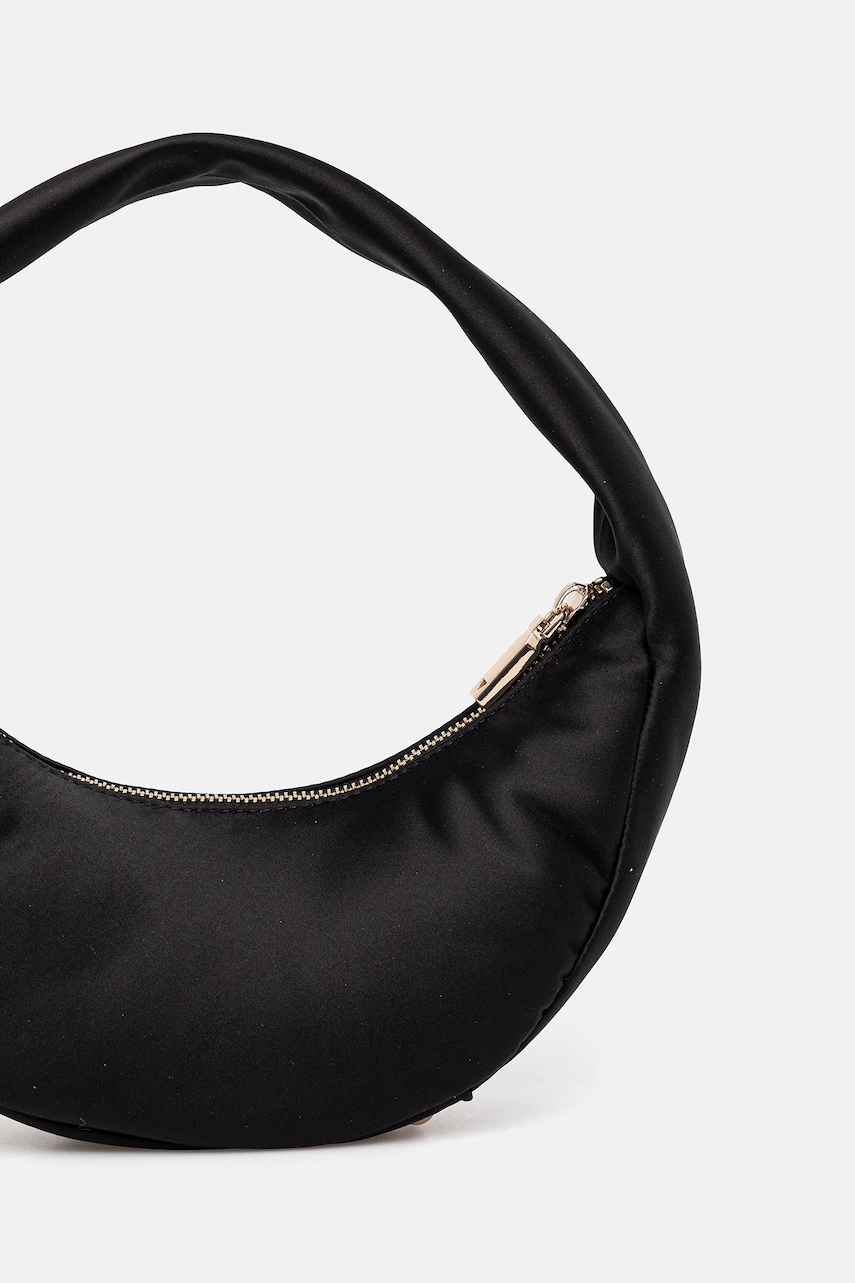 - Krótki uchwyt dla komfortowego noszenia w dłoni lub na ramieniu. - Model wyposażony w metalowe nóżki, które zabezpieczają spód torebki. - Zapięcie na suwak. - Model z podszewką. - Przegrody na karty. - Liczba przegródek na karty: 3. - Długość uchwytu: 38 cm. - Głębokość: 7 cm. - Wysokość: 27 cm. - Szerokość w najszerszym miejscu: 25 cm.