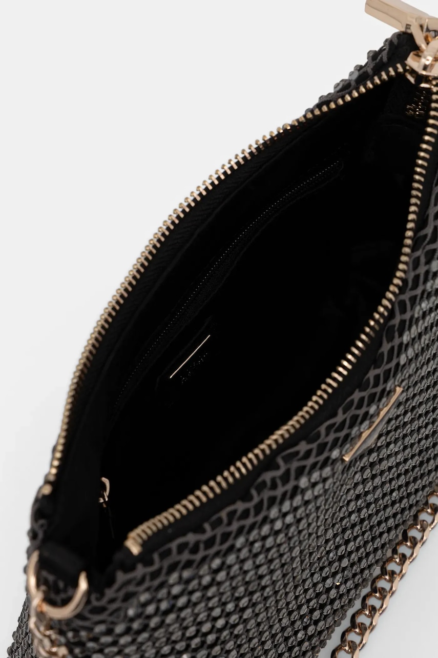 - Dołączony tekstylny worek zabezpiecza produkt przed kurzem. - Komora zapinana na suwak. - Posiada kieszonkę wewnętrzną zapinaną na suwak i przegrody na karty. - Usztywnione dno torebki pozwala zachować kształt produktu przez długi czas. - Model wyposażony w metalowe nóżki, które zabezpieczają spód torebki. - Torebka do noszenia w ręku lub na ramieniu. - Nieodpinany pasek bez regulacji. - Nie mieści formatu A4. - Model z podszewką. - Liczba przegródek na karty: 3. - Liczba zapinanych na suwak kieszeni wewnętrznych: 1. - Długość paska: 54 cm. - Głębokość: 7 cm. - Wysokość: 16 cm. - Szerokość u podstawy: 21 cm.
