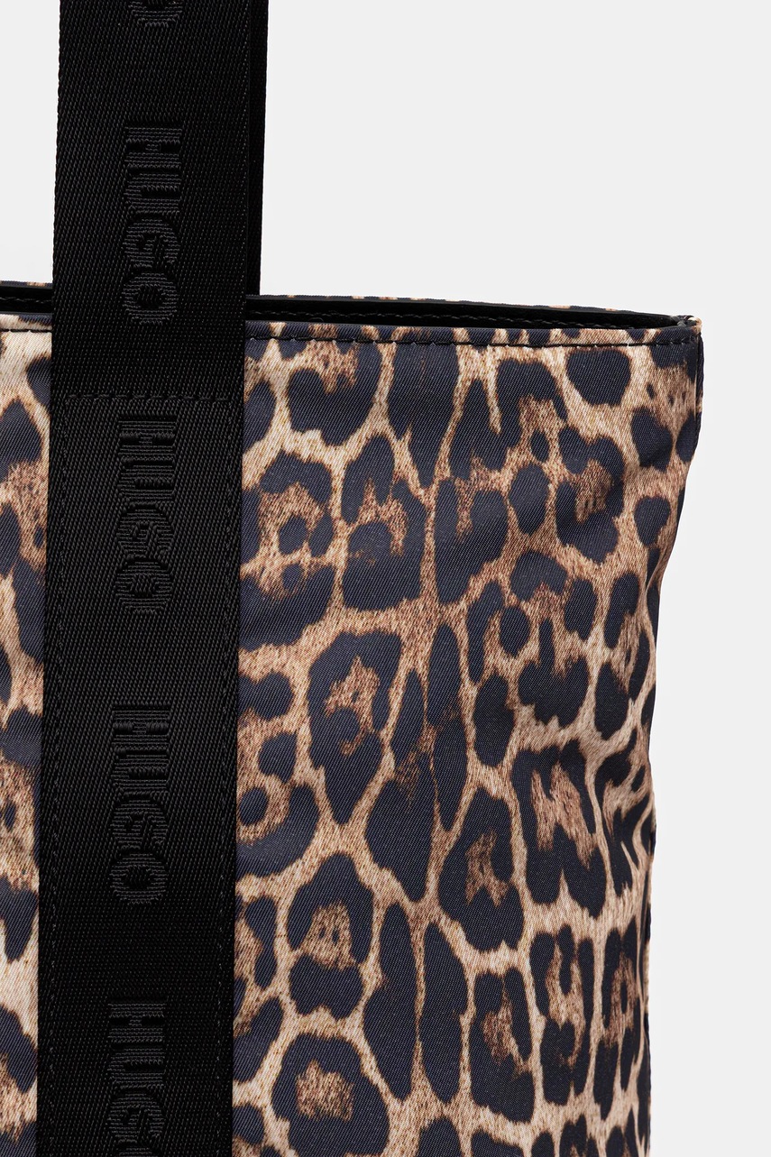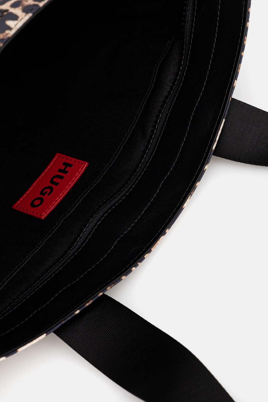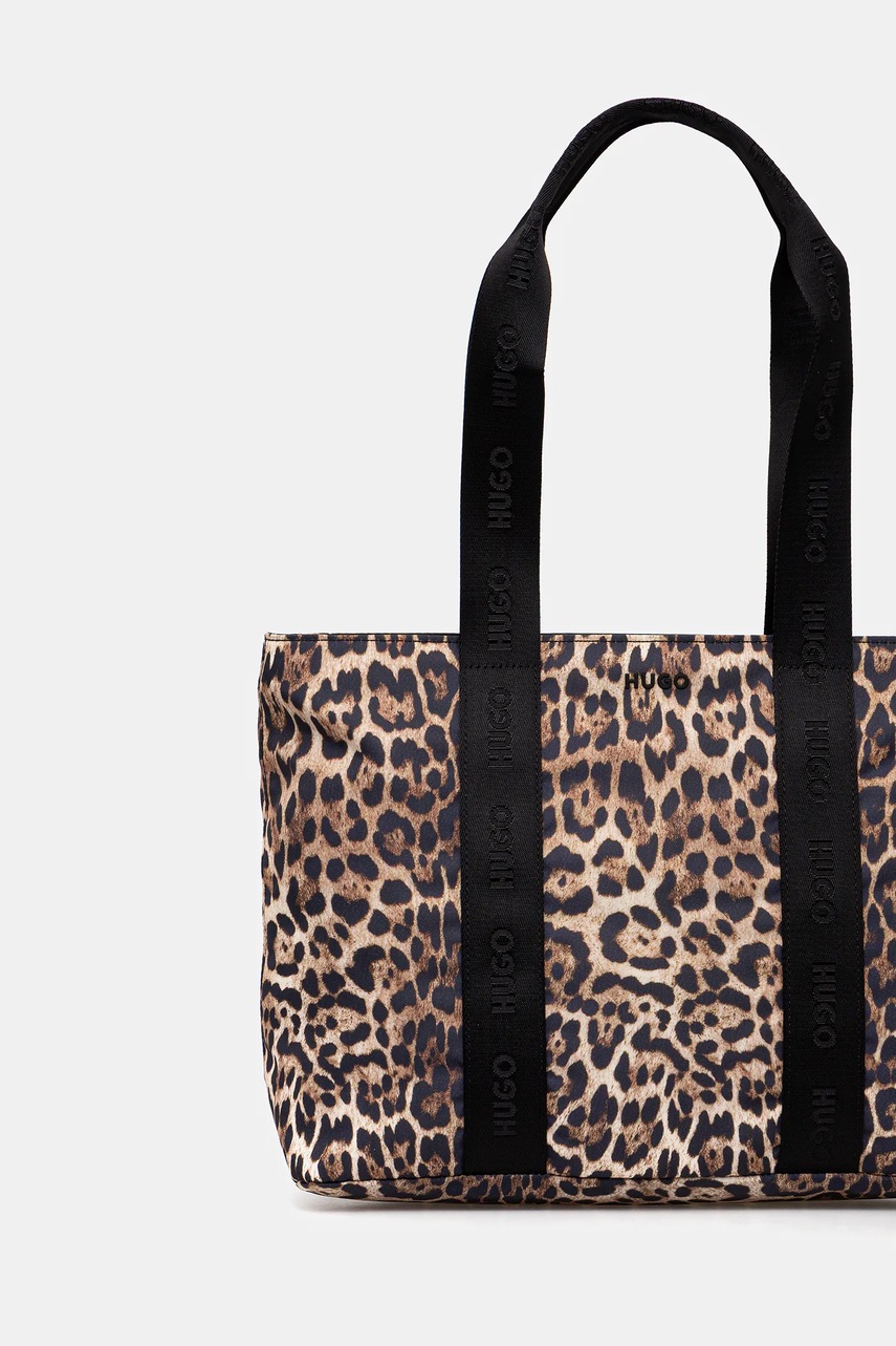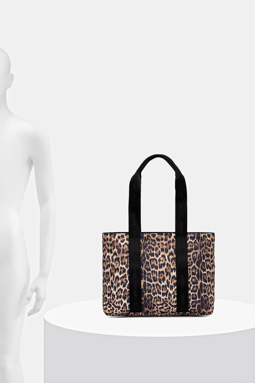 - Ten produkt został uszyty z poliestru pochodzącego z recyklingu. - Nadruk z motywem zwierzęcym. - Uchwyty dla komfortowego noszenia w dłoni lub na ramieniu. - Wsuwana kieszeń wewnętrzna. - Zapięcie na suwak. - Mieści format A4. - Model z podszewką. - Długość uchwytów: 57 cm. - Głębokość: 12 cm. - Wysokość: 26 cm. - Szerokość u podstawy: 34 cm.