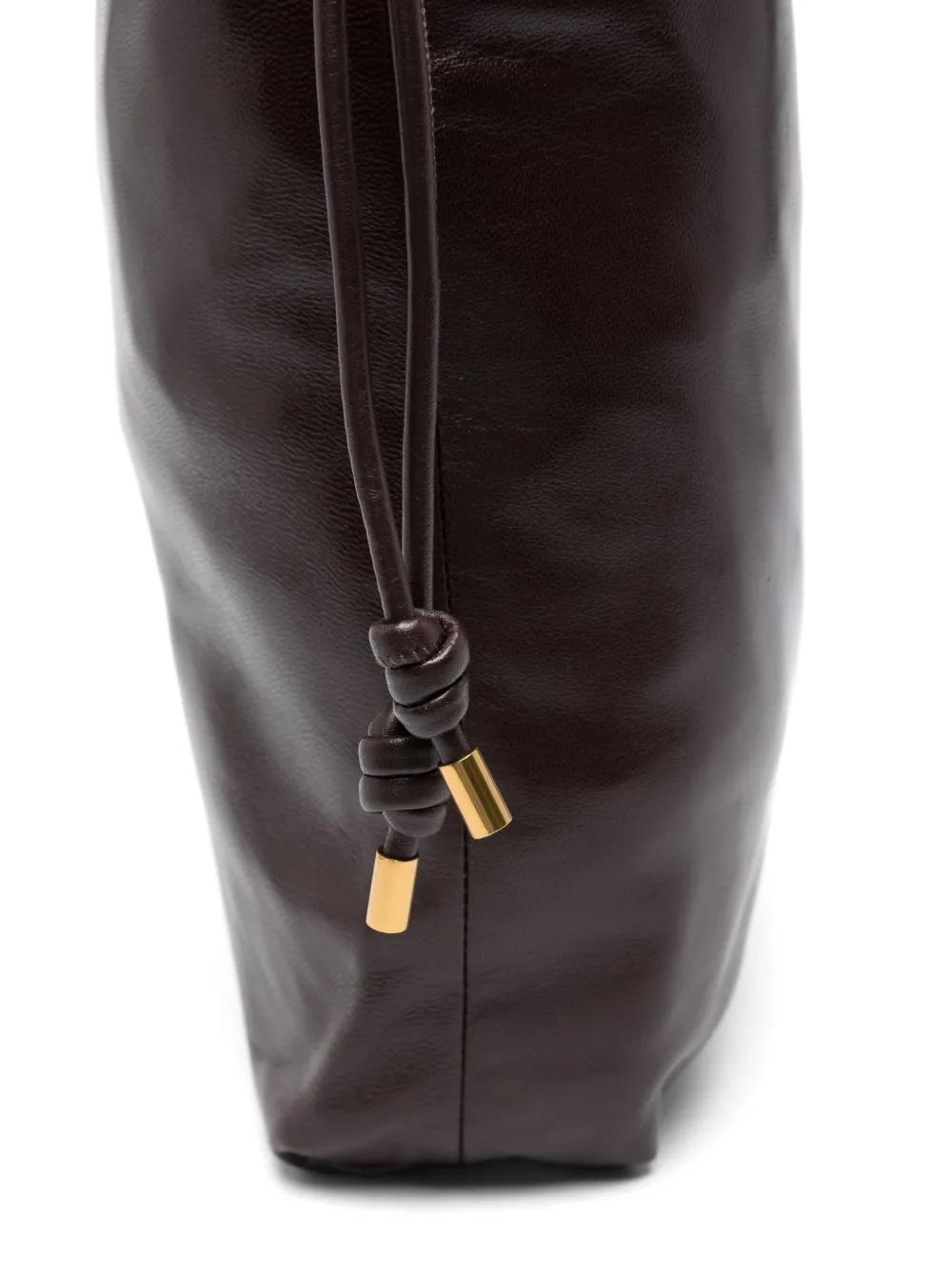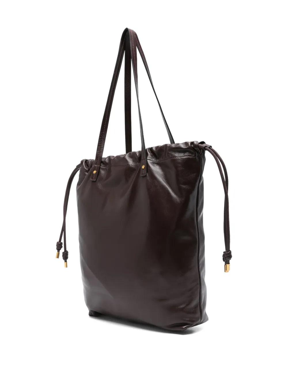 burgundy bovine leather drawstring closure two shoulder straps gold-tone hardware internal zip pocket