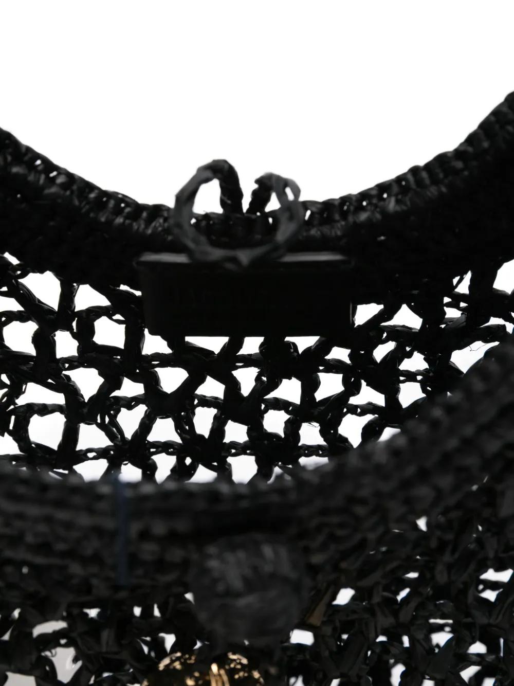 black raffia material circular top handle open weave gold-tone sphere and square charms