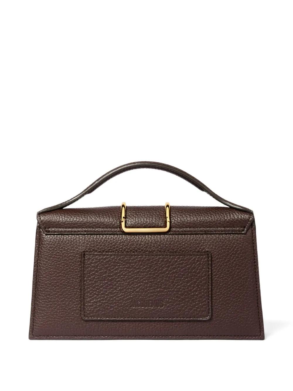 dark brown top handle detachable shoulder strap gold-tone hardware grained texture internal slip pocket