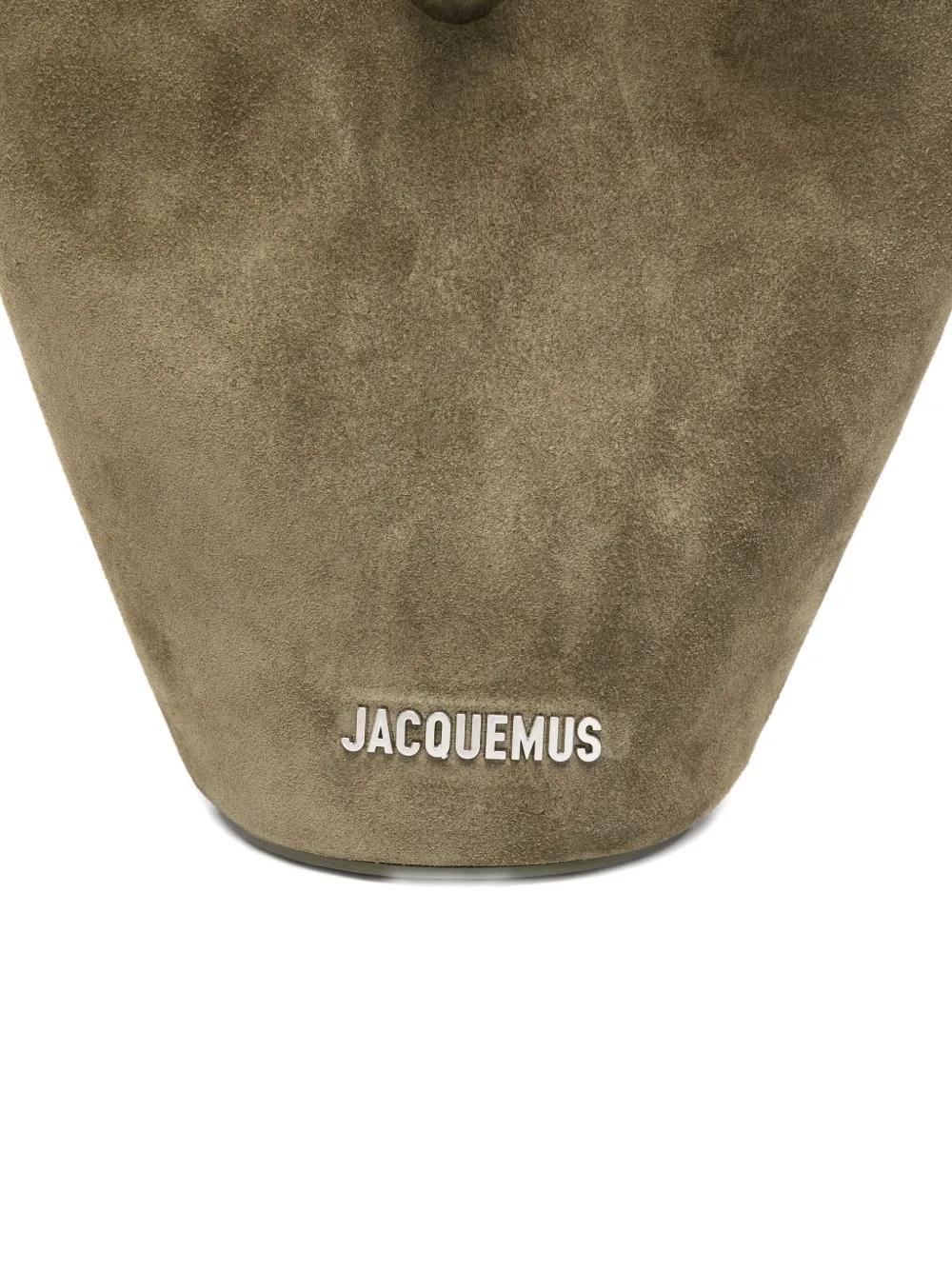 khaki green suede texture top handles metallic clasp internal zip pocket logo lettering