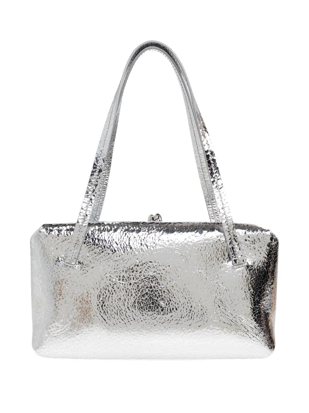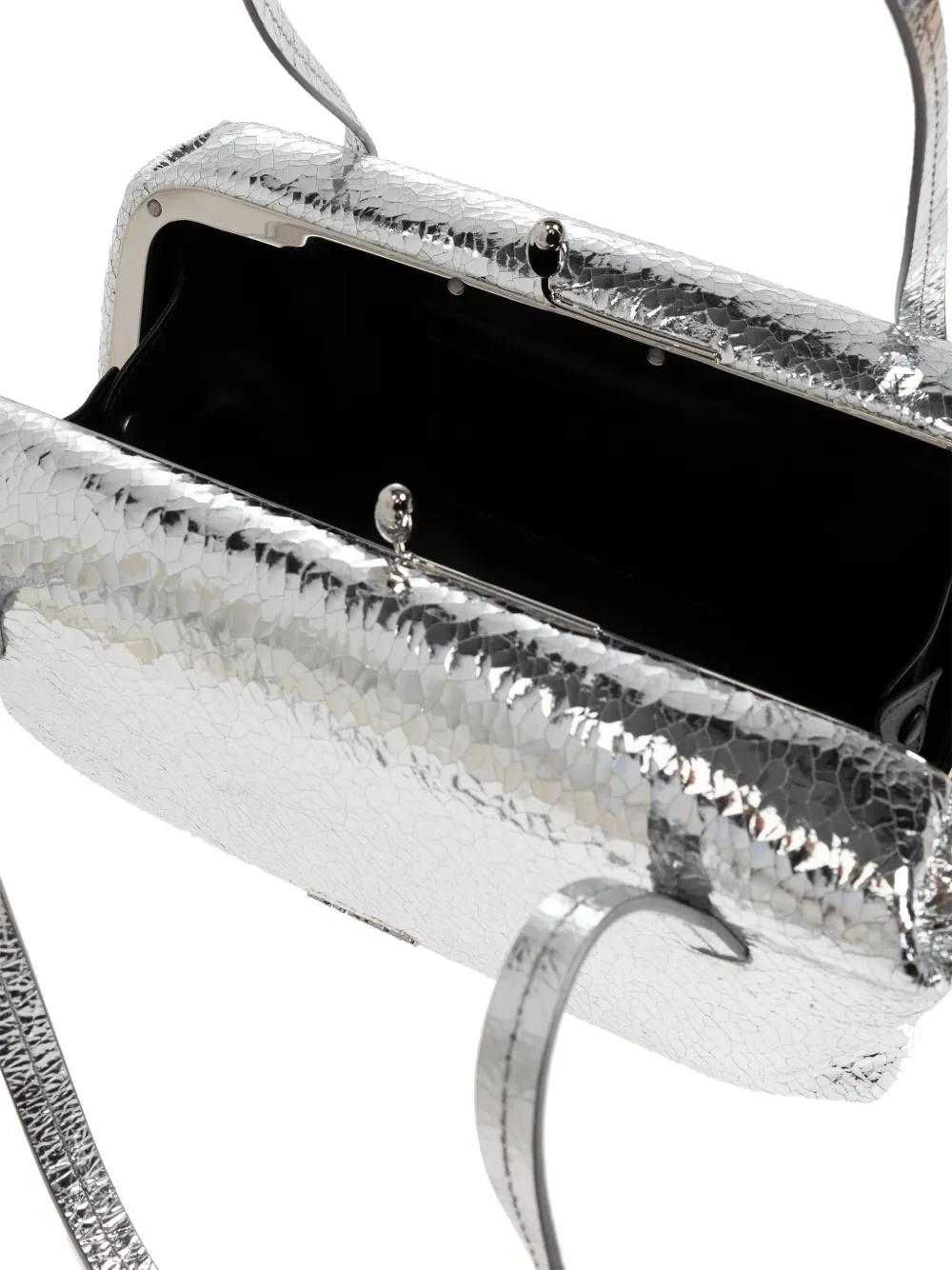 silver textured effect top handle clasp fastening