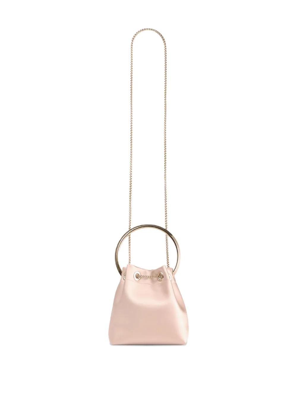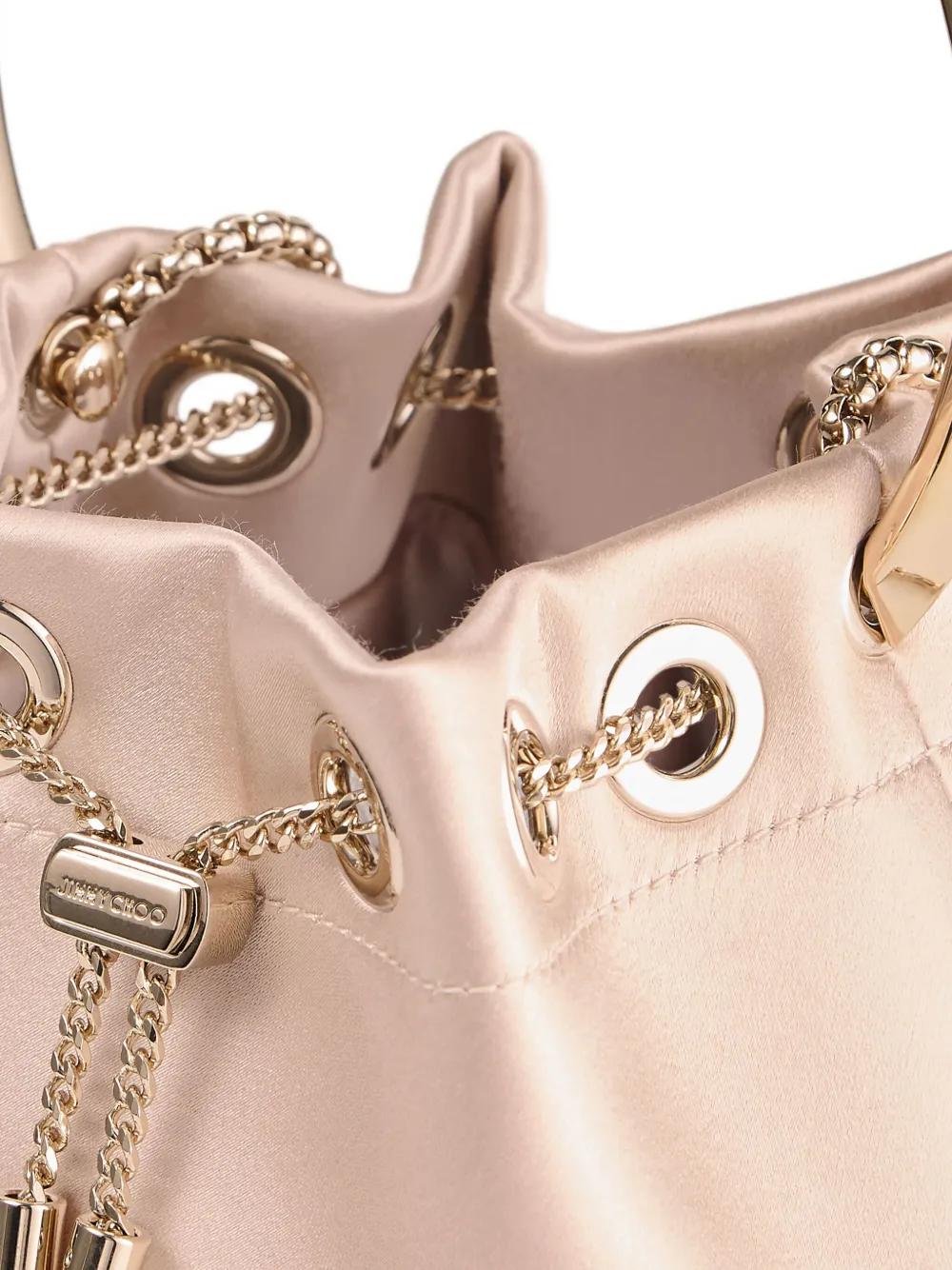 pink leather circular top handle metal-tassel closure with Jimmy Choo engraving gold-toned chain strap