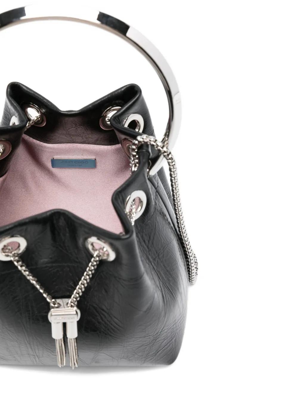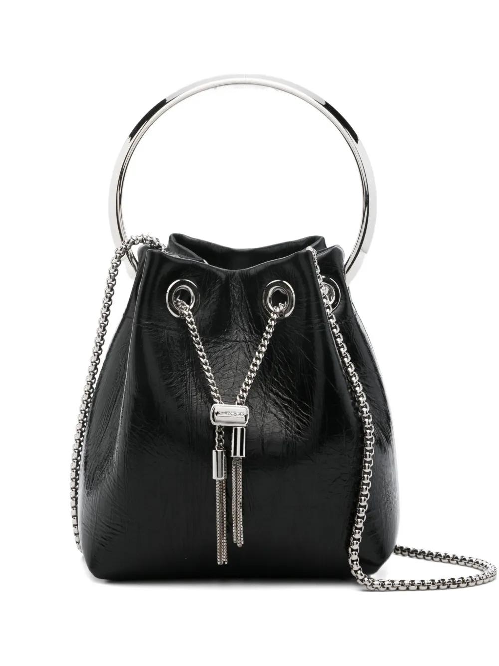 Jimmy Choo Bon Bon circular-handle tassel bucket bag - Black