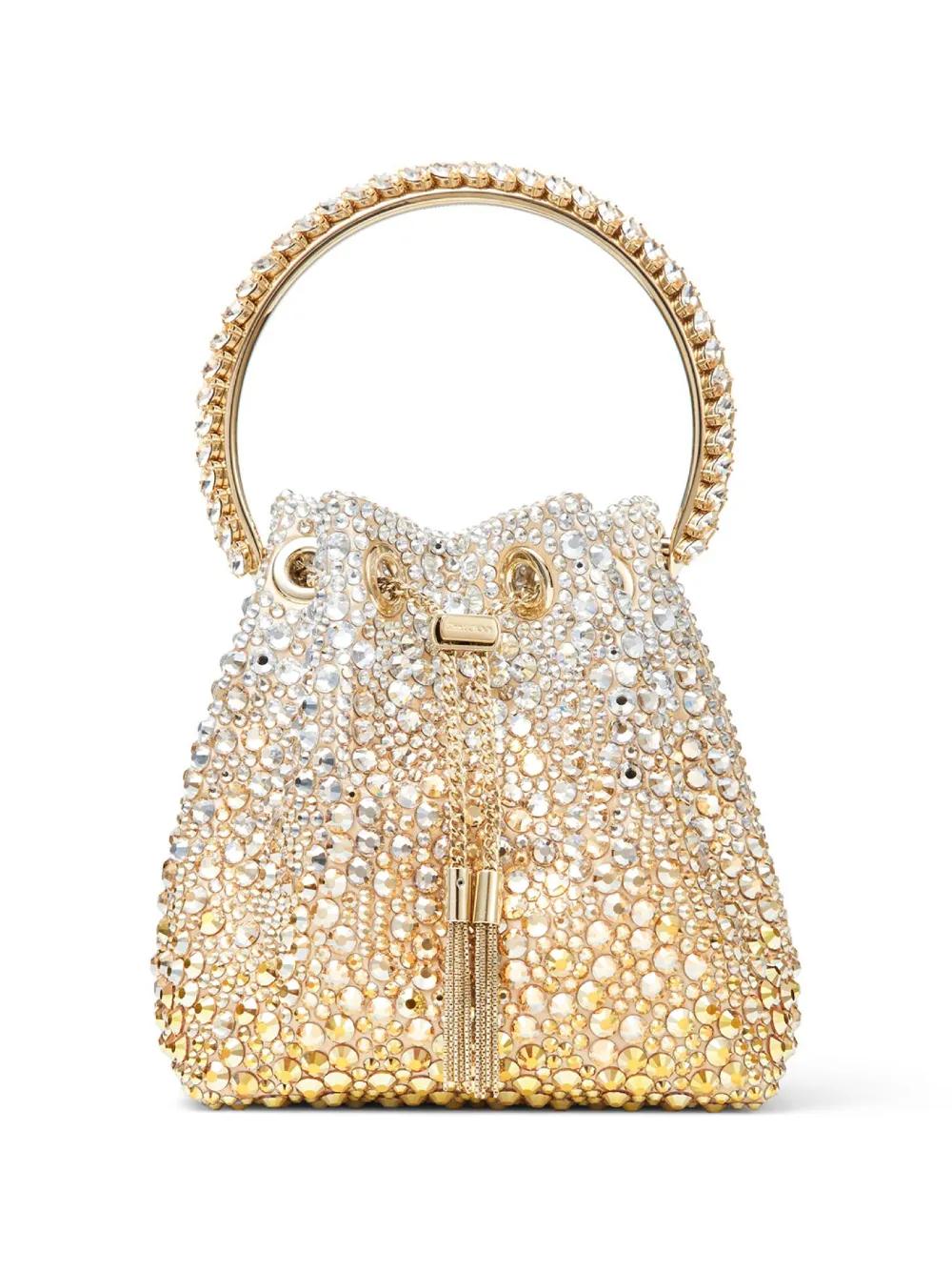 Jimmy Choo Bon Bon crystal-embellished bucket bag - Gold