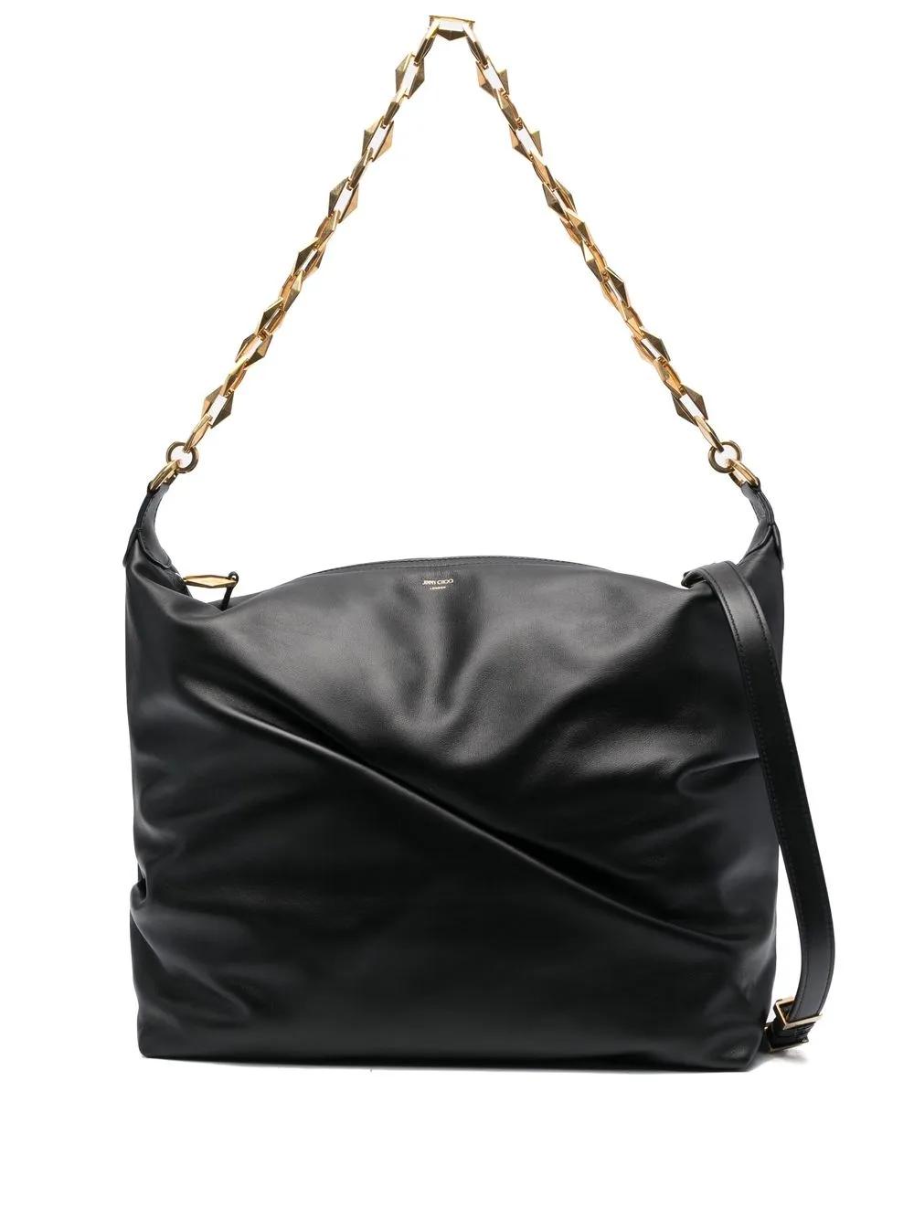 black calf leather/brass gold-tone hardware logo stamp to the front chain-link shoulder strap adjustable detachable shoulder strap top zip fastening main compartment internal zip-fastening pocket internal logo patch