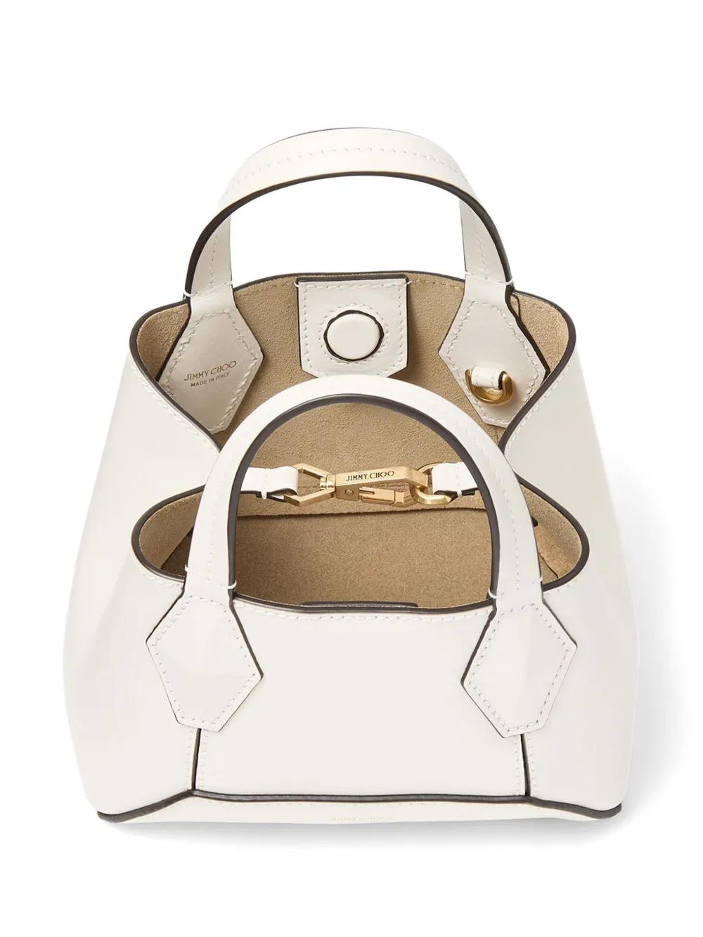 white concealed magnetic fastening lobster claw fastening two rolled top handles main compartment