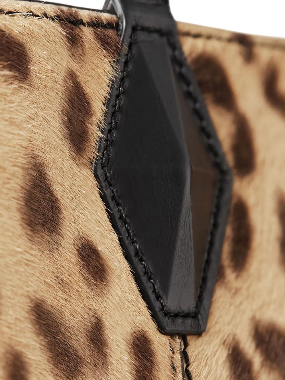 light brown/black calf suede/calf hair panelled design leopard print two flat top handles charm detail main compartment detachable internal pocket suede lining Wardrobe Icon