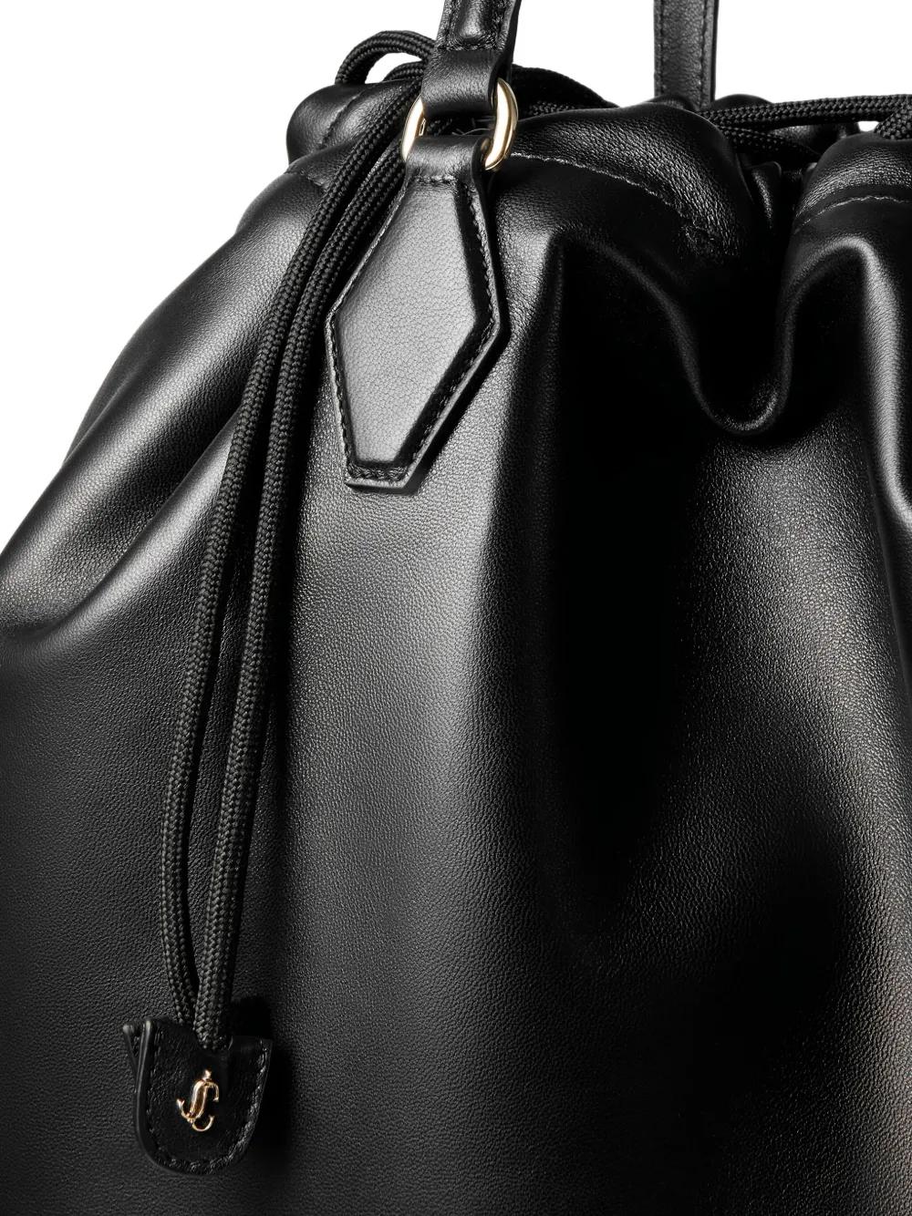black top drawstring fastening two long top handles embossed logo to the front internal logo plaque