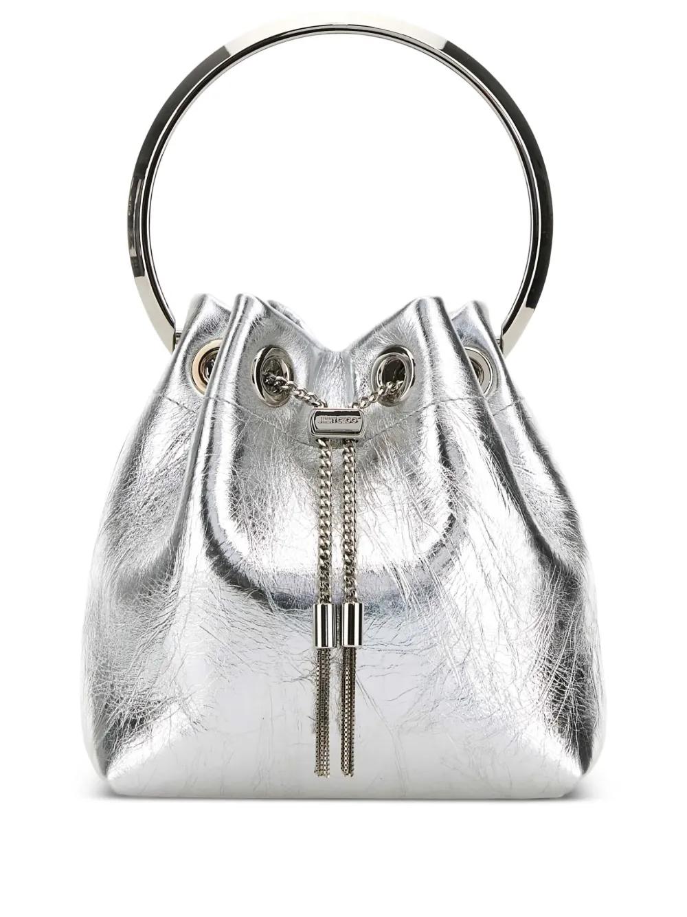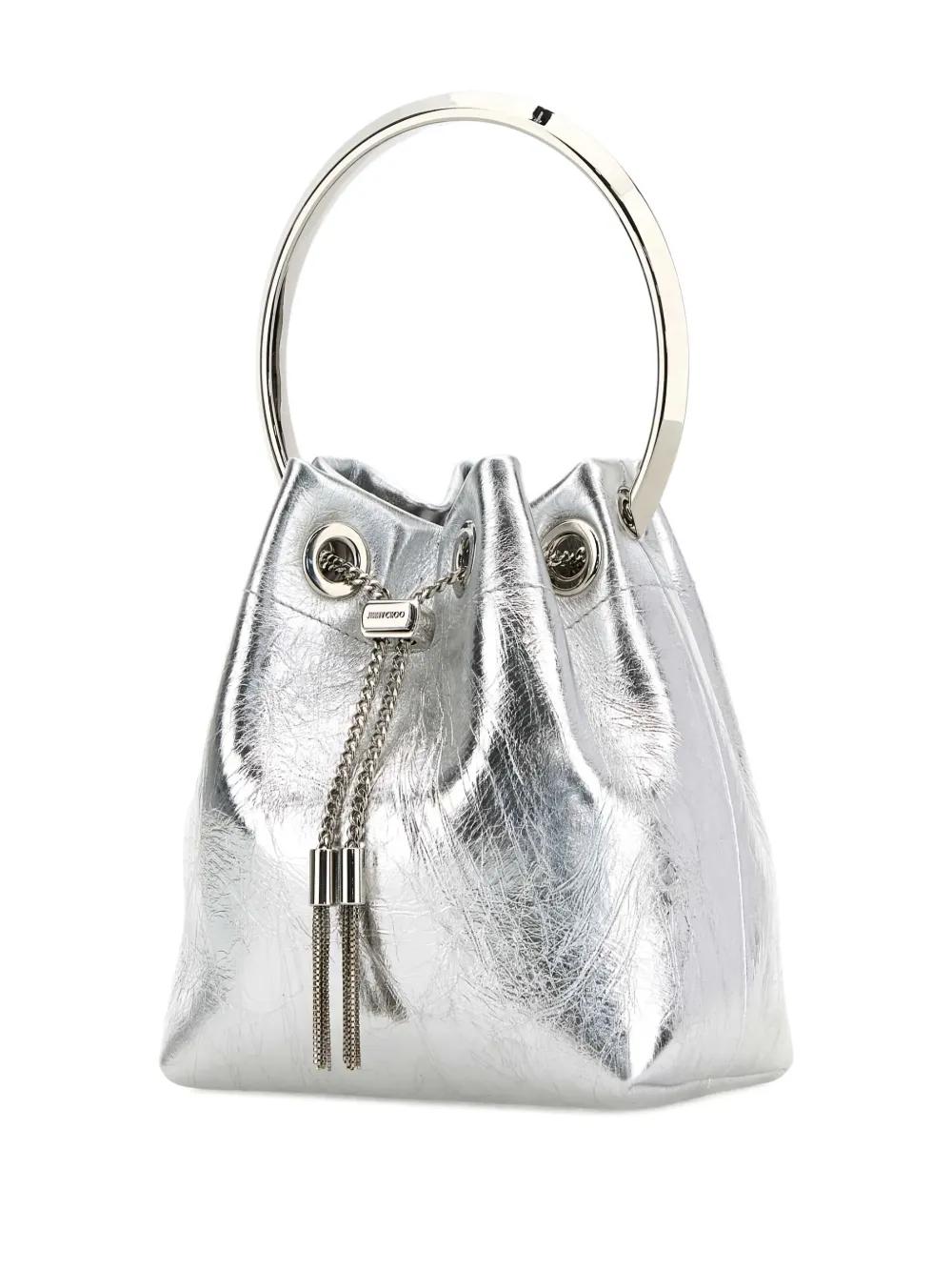 silver-tone drawstring fastening single top handle metallic finish main compartment